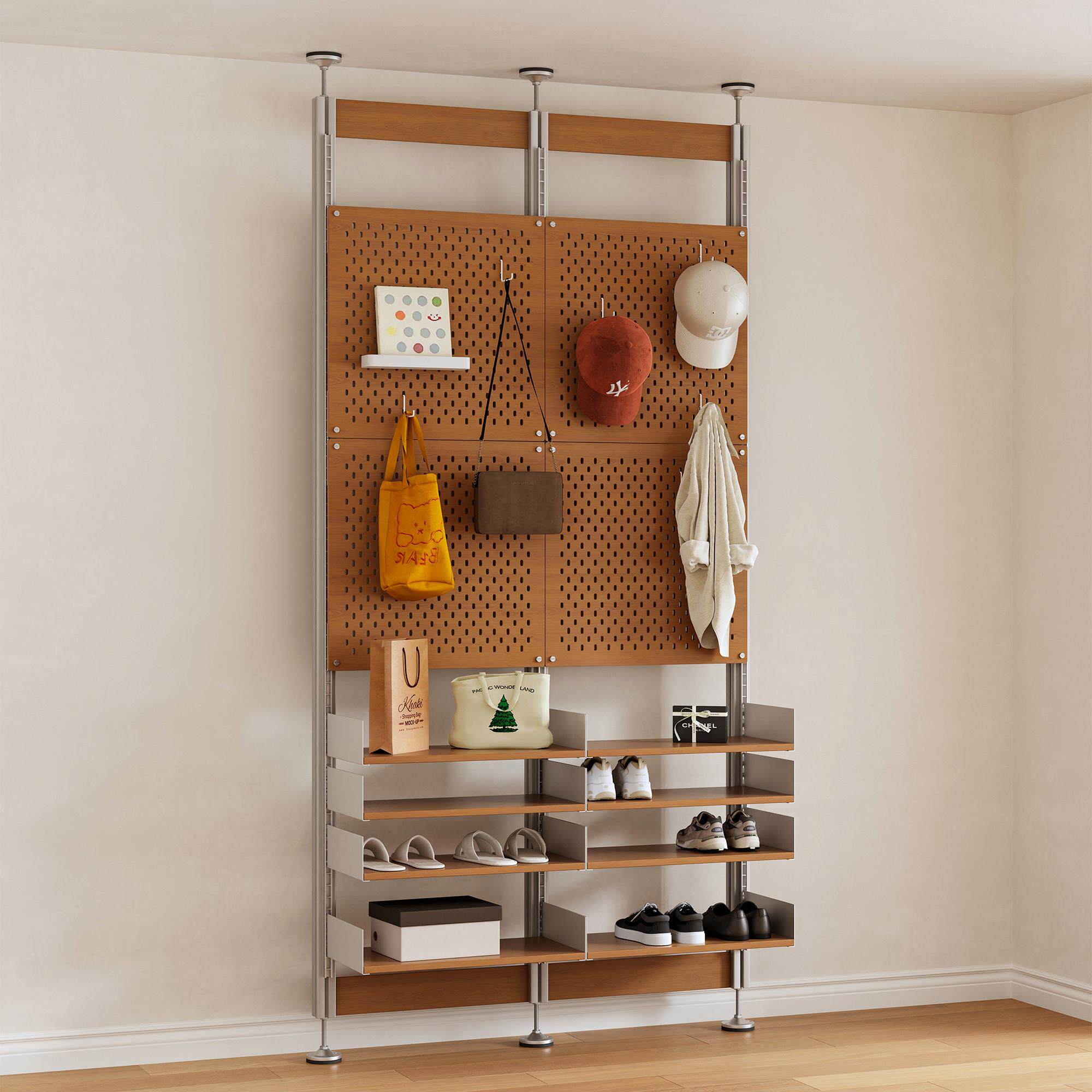📚 书格有物顶天立地置物架中古客厅玄关衣帽架洞洞板鞋架隔断展示架