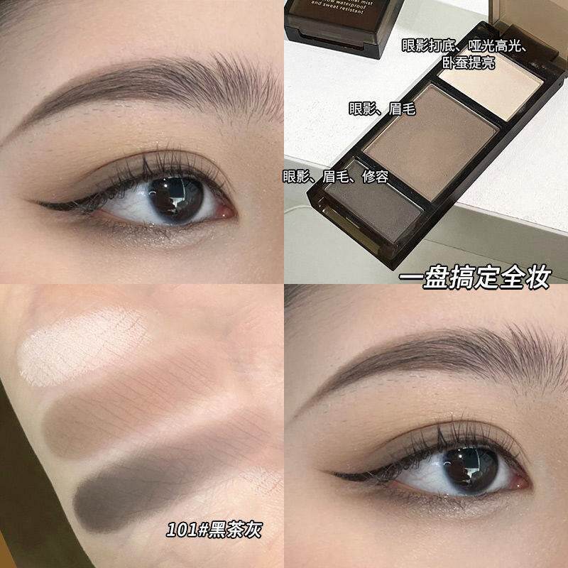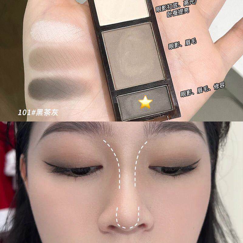 📚 一盘搞定全妆容!卡希尔丝绒柔雾立体眉粉哑光三色修容眼影一体盘