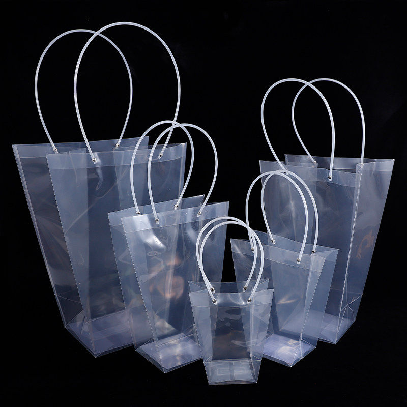📚 花喜爱 透明手提袋装花袋防水袋鲜花手拎花束花盒花艺插花礼品袋