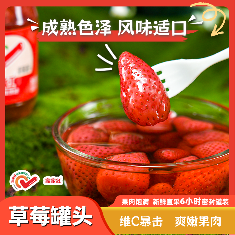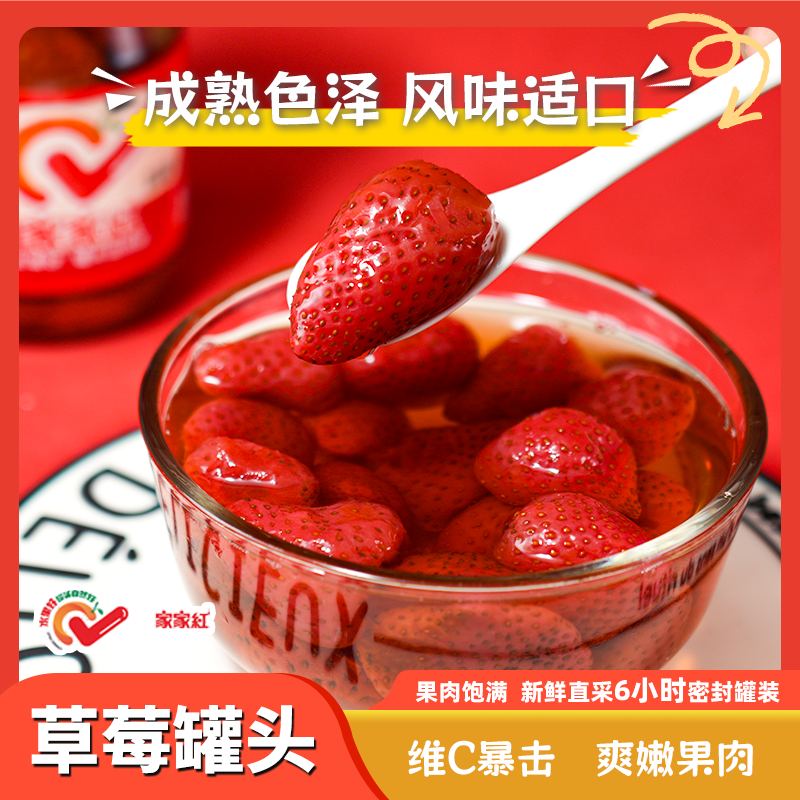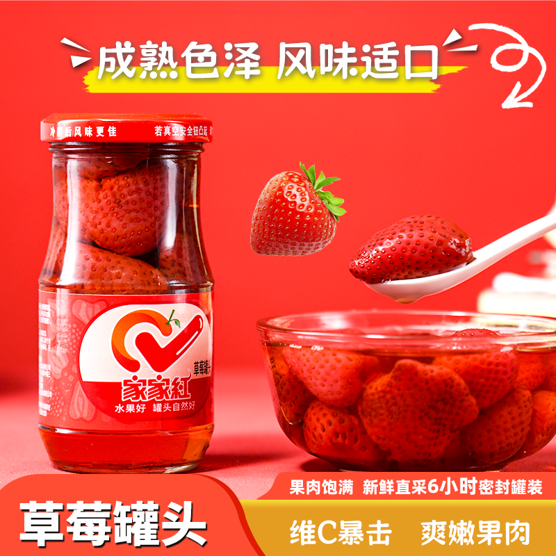 📚 家家红新鲜水果罐头草莓罐头245g*6瓶水果罐头奶茶店蛋糕烘焙原料
