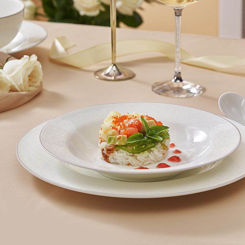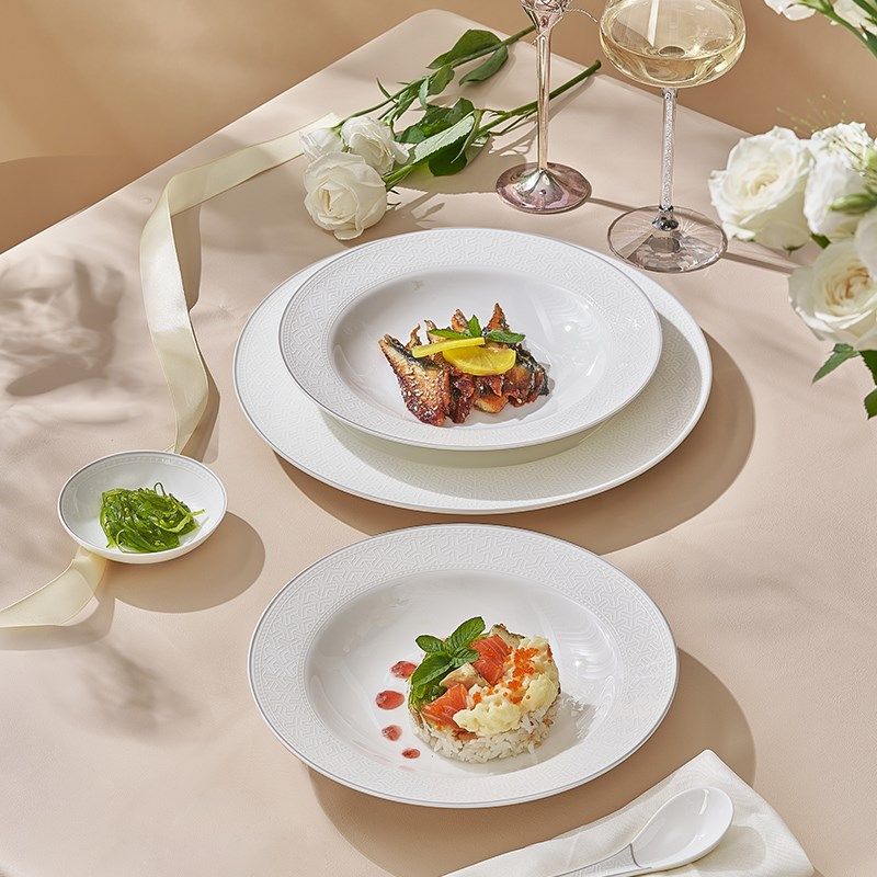 📚 华光国瓷 纯白浮雕骨瓷餐具套装碗碟套装简约家用礼盒装 尔雅东方