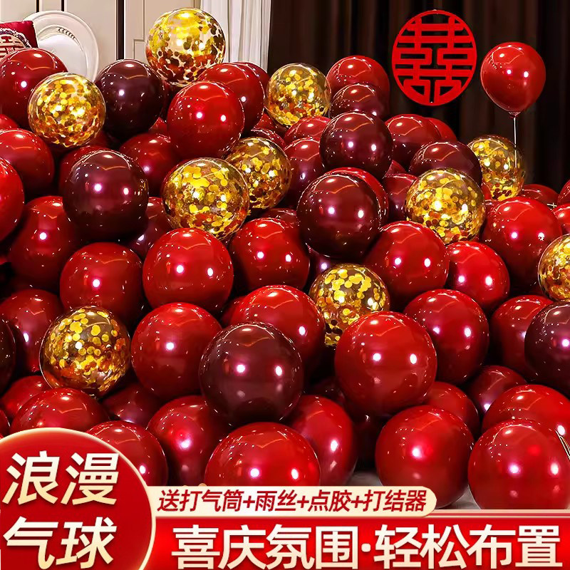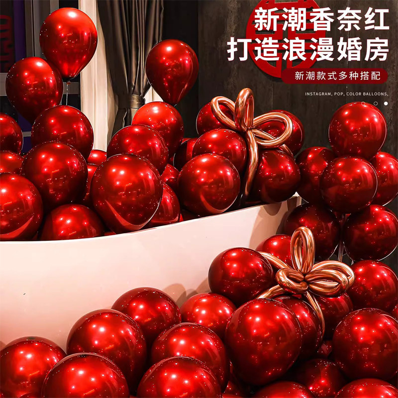 📚 结婚红气球双层加厚香奈红婚房布置气球新年装饰店庆开业气球装饰
