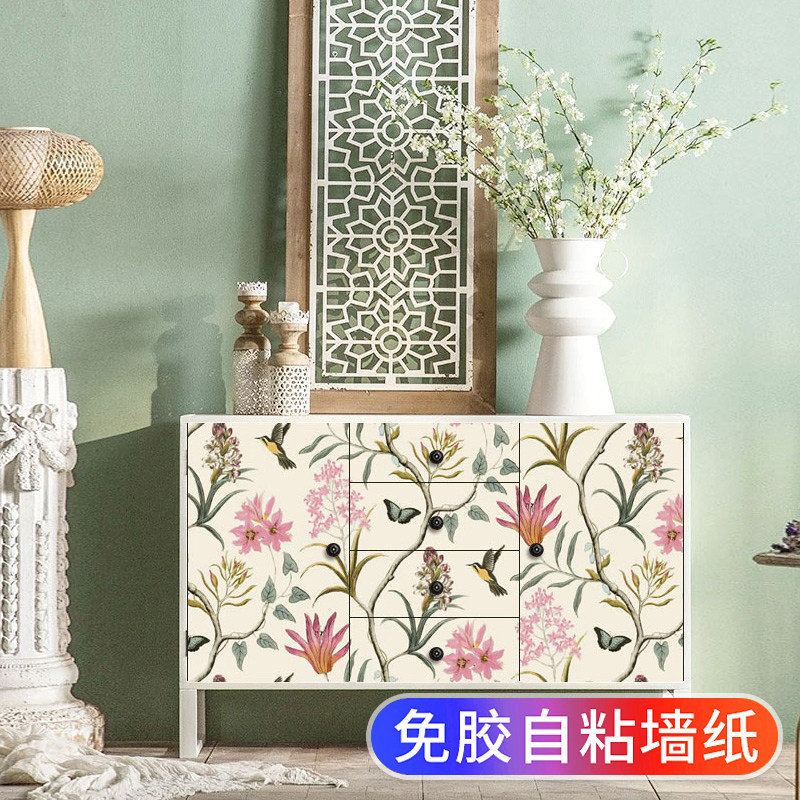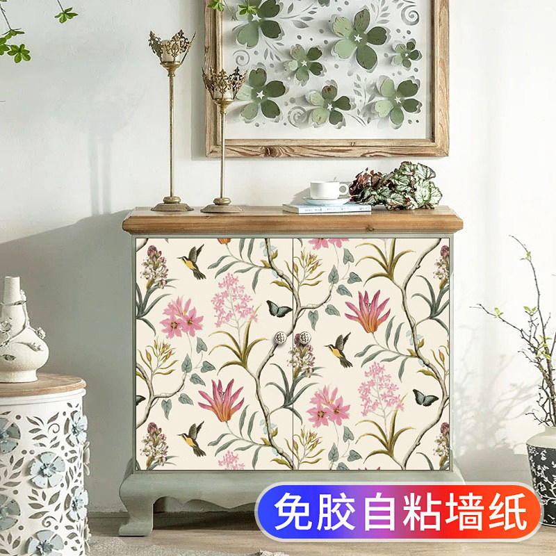 📚 美式花卉柜子改造贴纸家具翻新美化柜门橱柜鞋柜衣柜改色墙纸自粘
