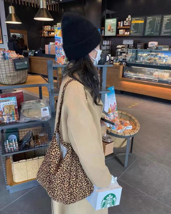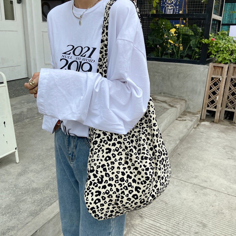 📚 韩国ins同款豹纹帆布包明星同款灯芯绒印花大容量单肩包斜跨包853