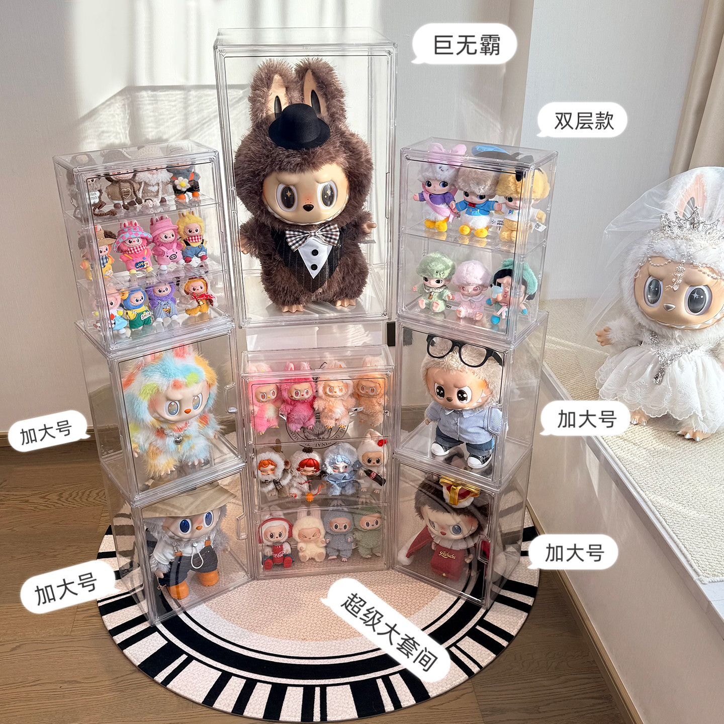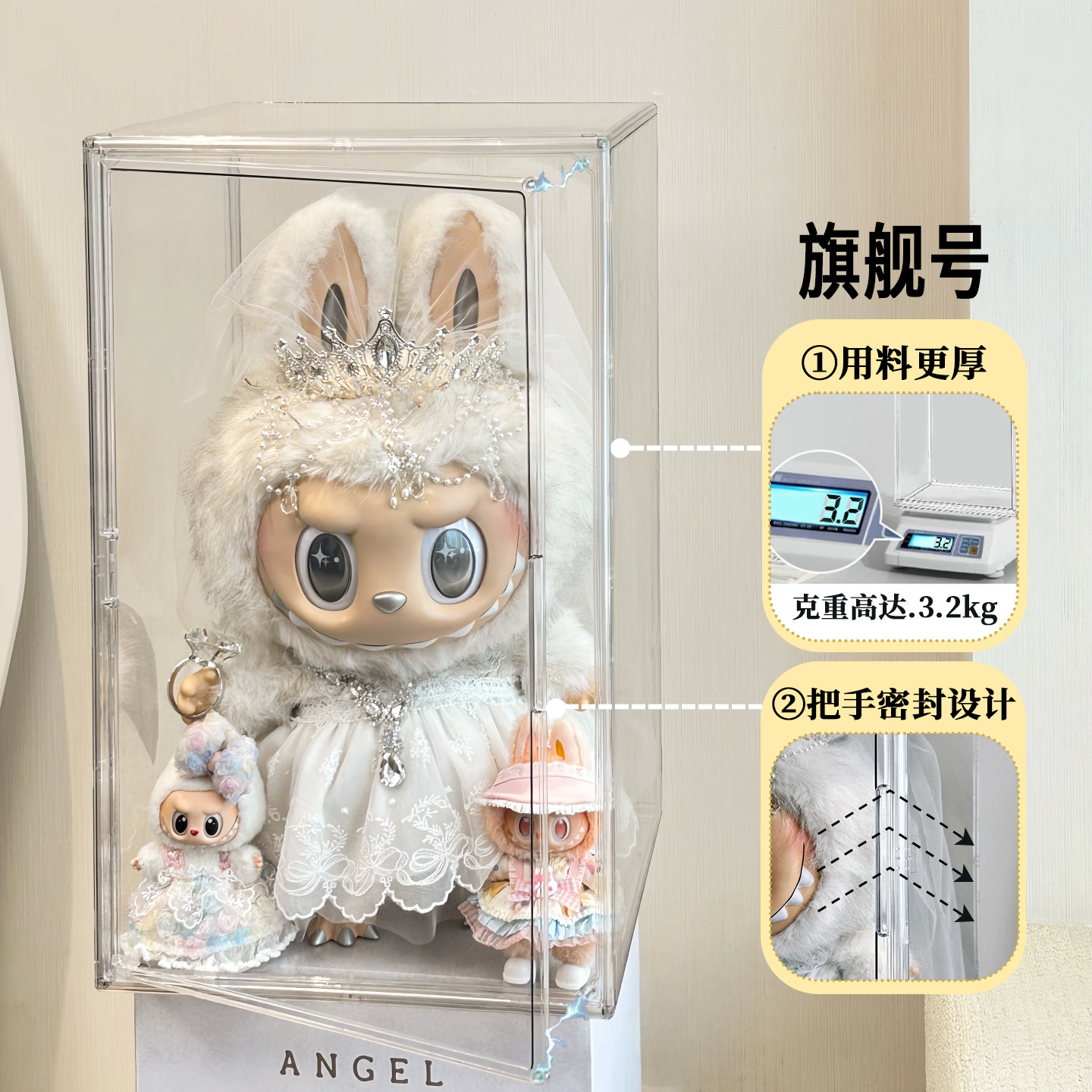 📚 拉布布zimomo十周年亚克力防尘展示盒labubu大天使泡泡玛特展示柜