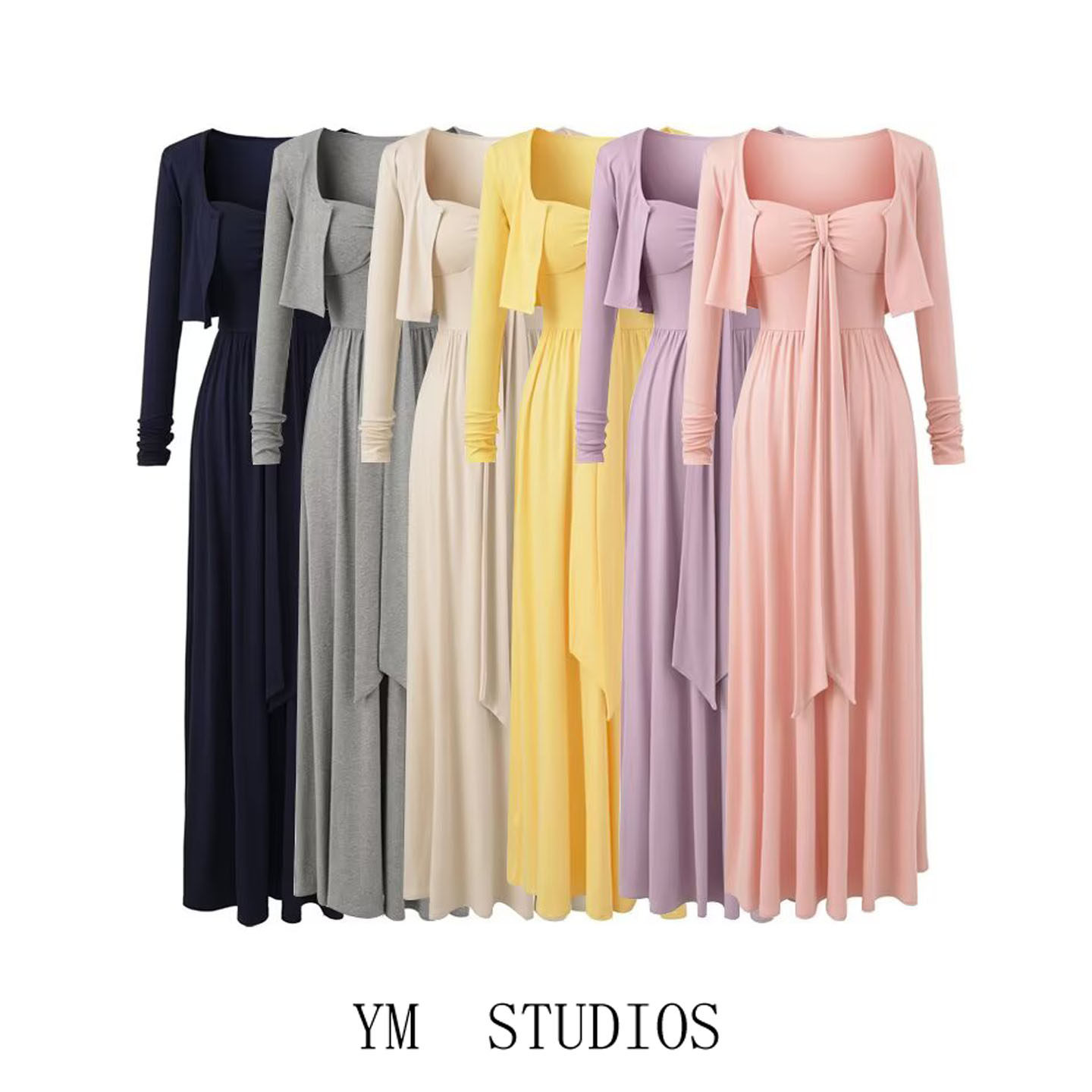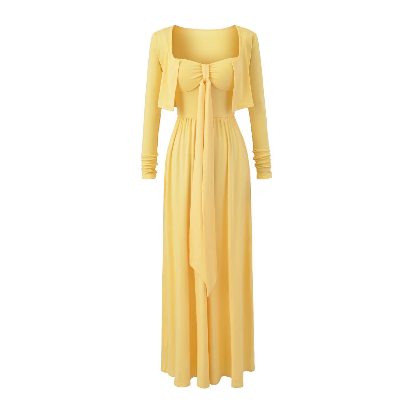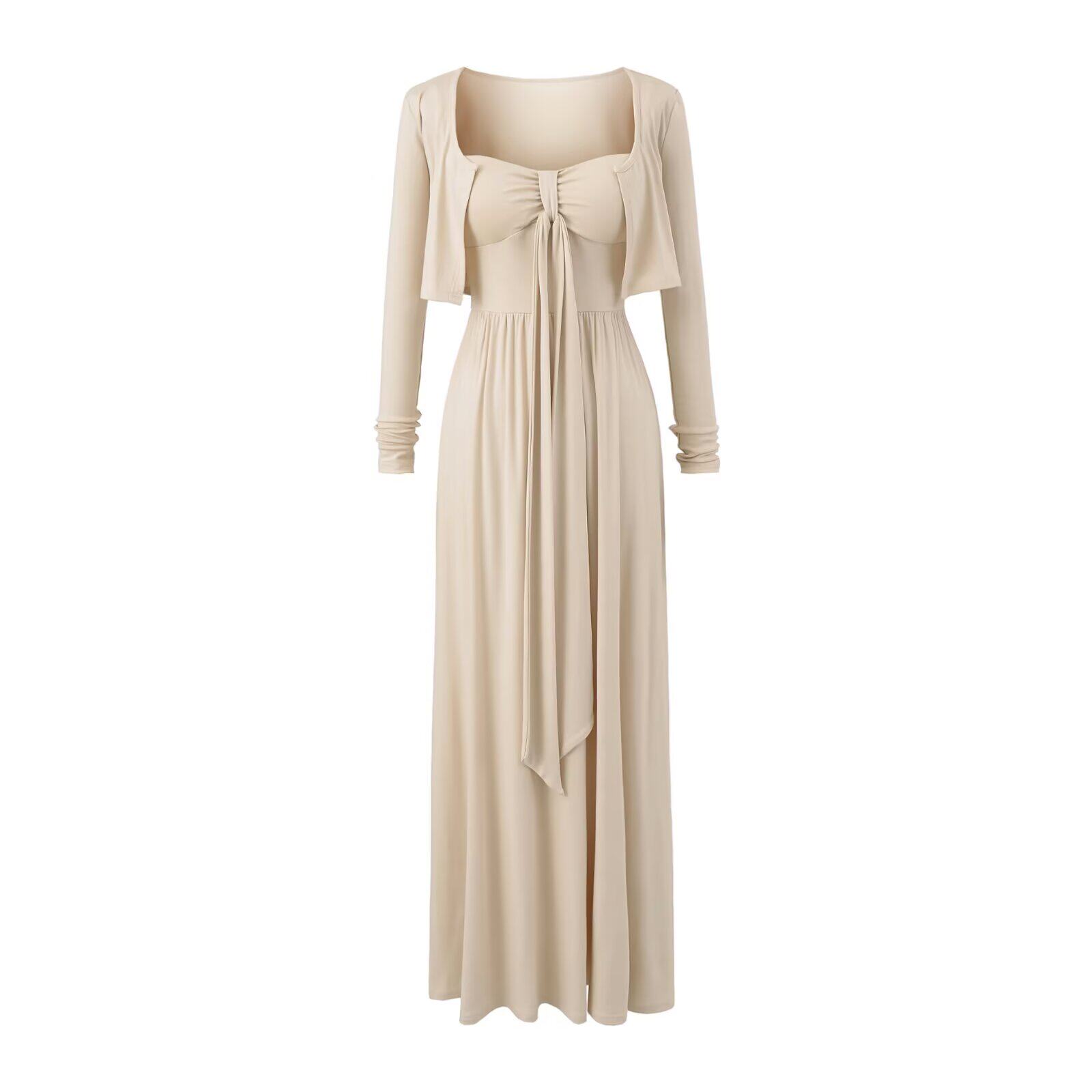 📚 欧美女装 温柔风抹胸绑带带胸垫吊带连衣裙+短款开衫长袖T恤外搭
