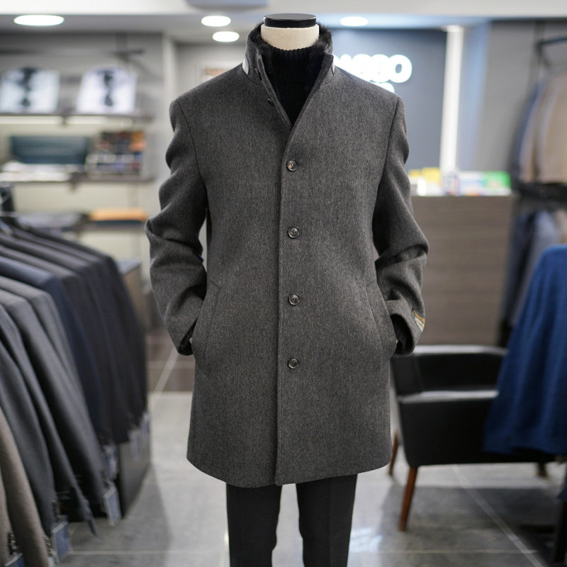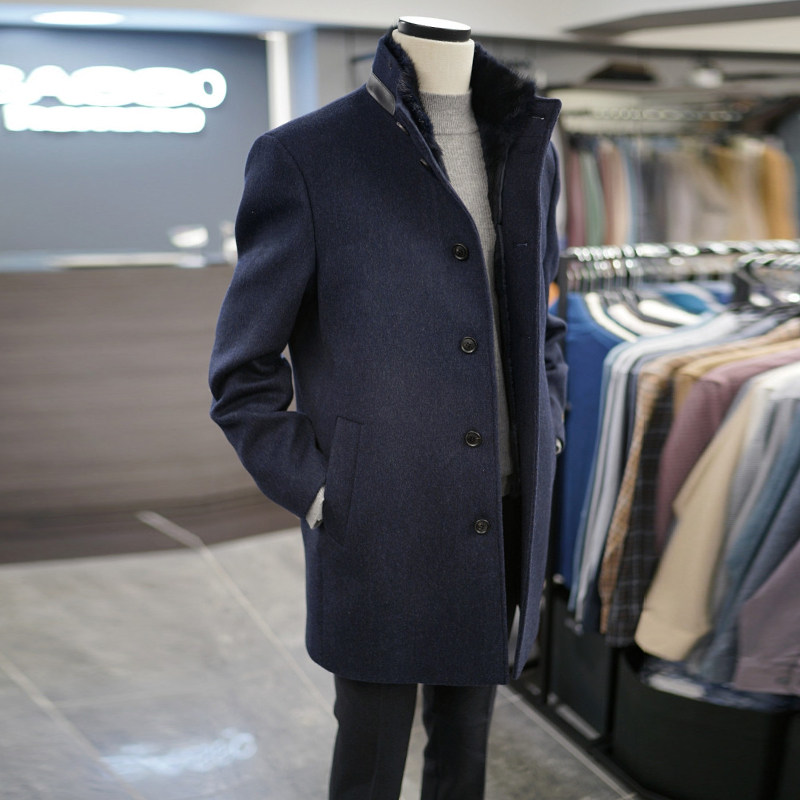 📚 0301冬BASSO棕色羊毛混纺兔毛麝鼠毛可拆卸内里中长款毛呢大衣
