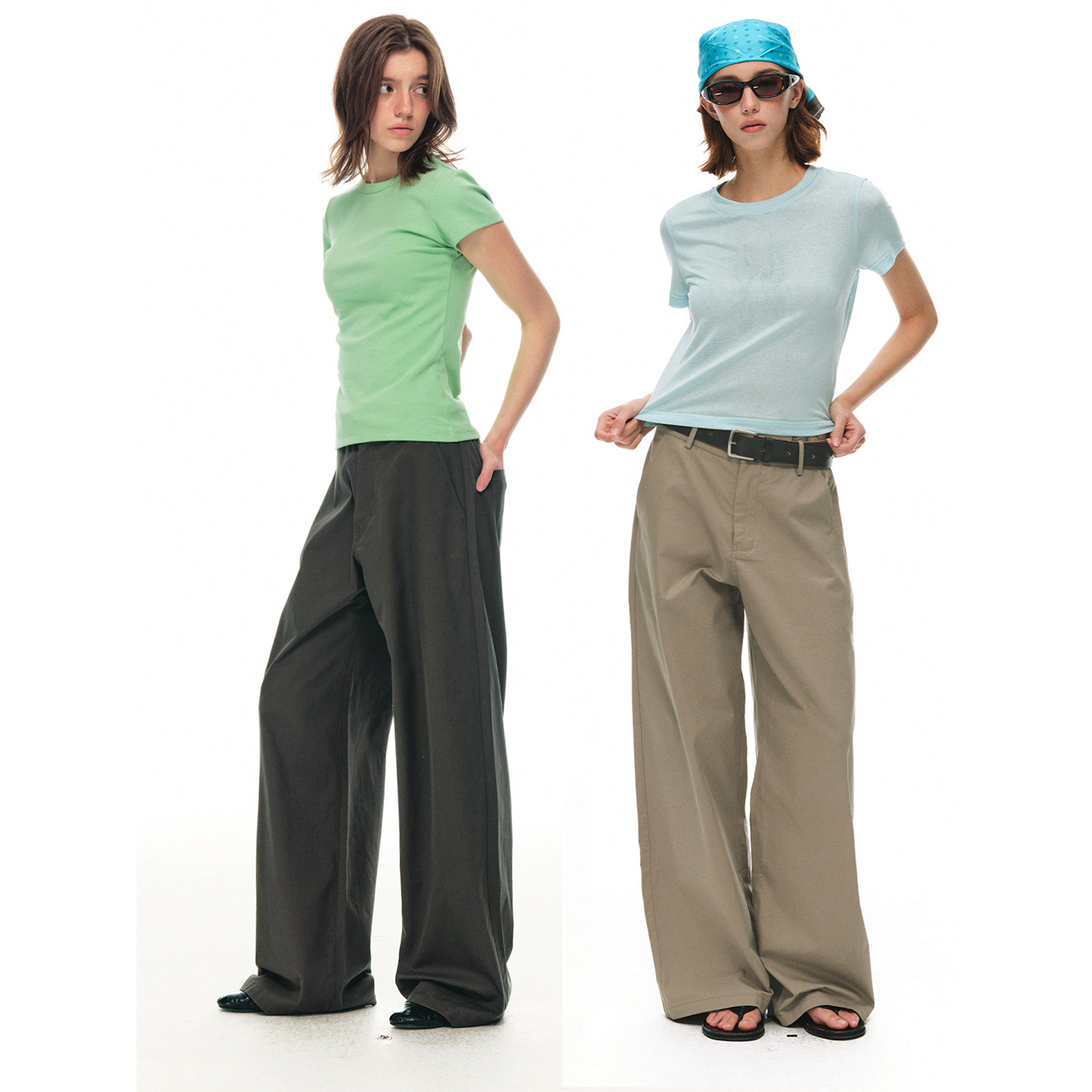 📚 CountryMoment 男女同款/老钱风卡其色宽松直筒休闲裤简约工装裤