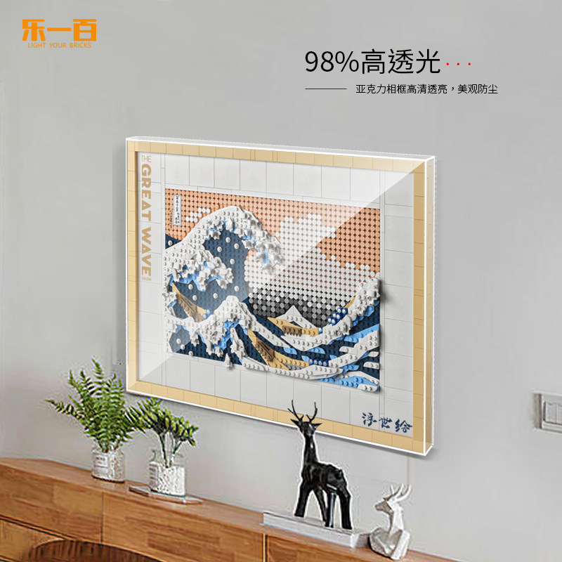 📚 乐一百适用于乐高31208神奈川冲浪里相框展示盒亚克力挂墙防尘