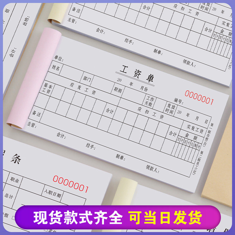 📚 工资表员工工资单个人计件记工本提成发放签字条美容院入职预支明细表格建筑工地考勤本子劳务薪资账单流水单