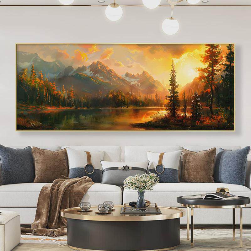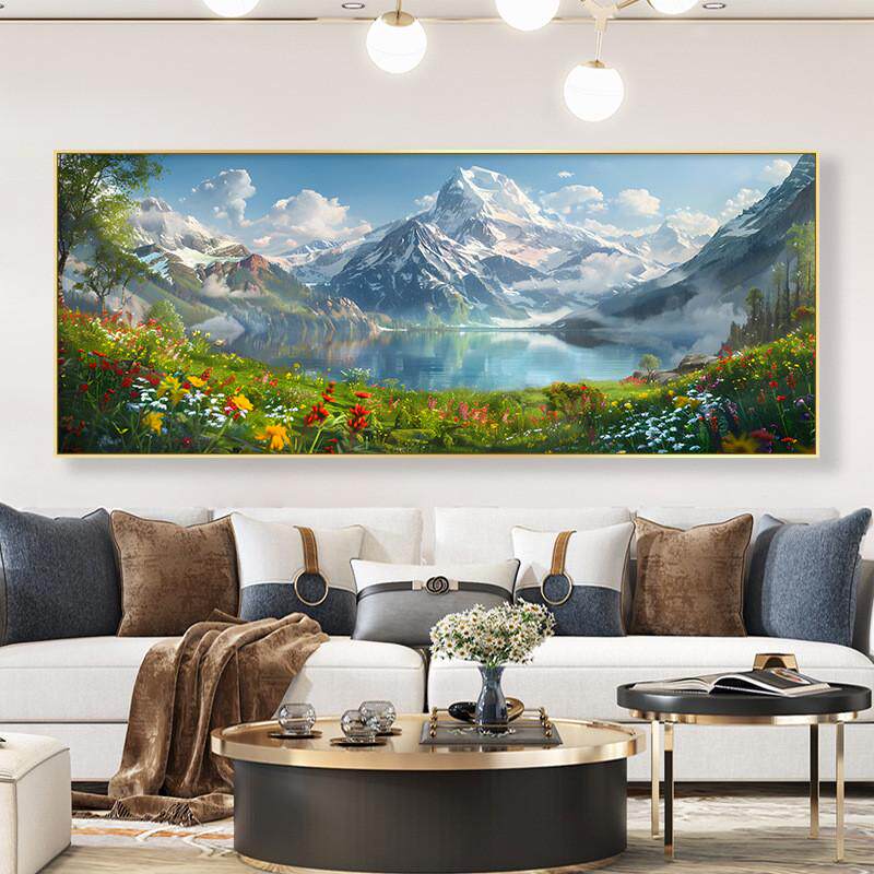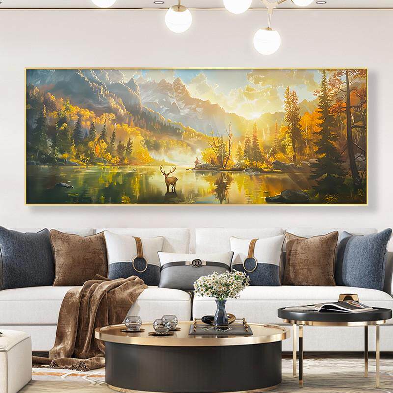 📚 2024新款壁画聚宝盆山水画办公室客厅沙发背景墙装饰画风景画挂画