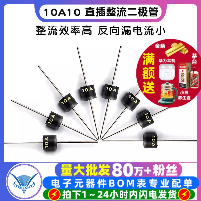 📚 10A10 直插 整流二极管大功率大电流10A/1000V 防倒流反冲 10个