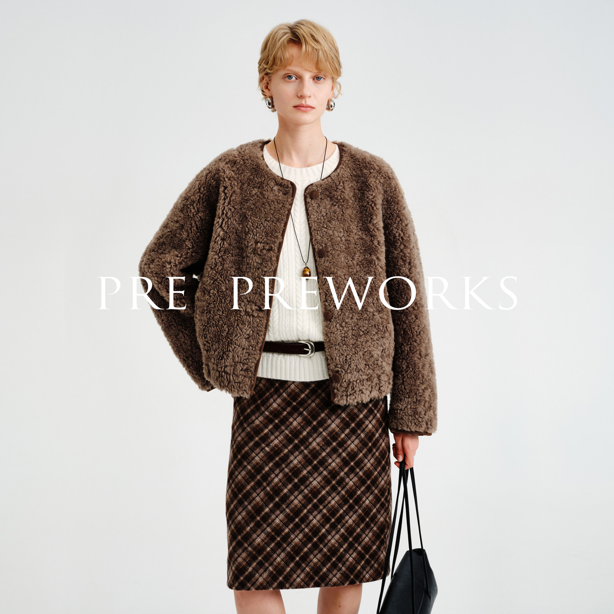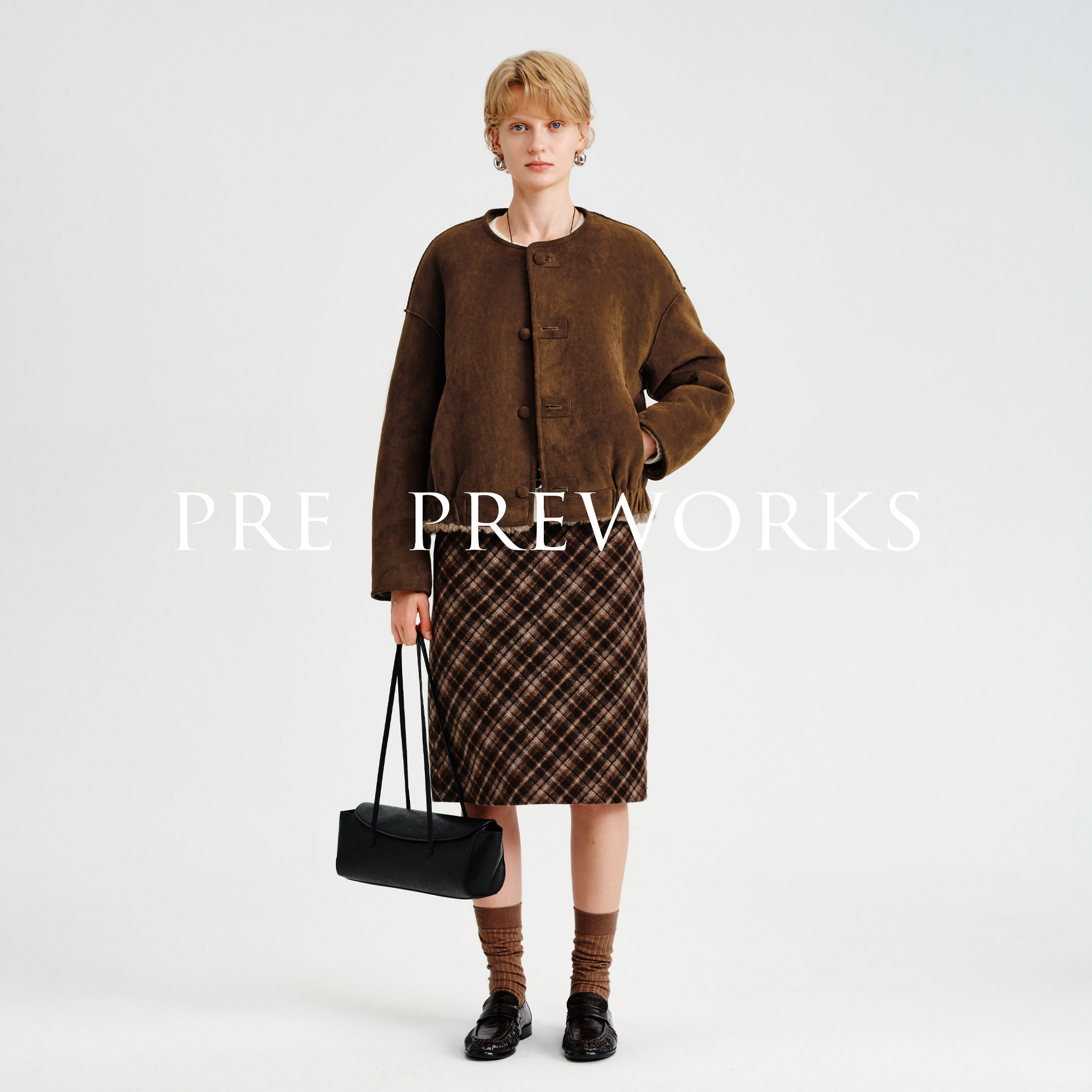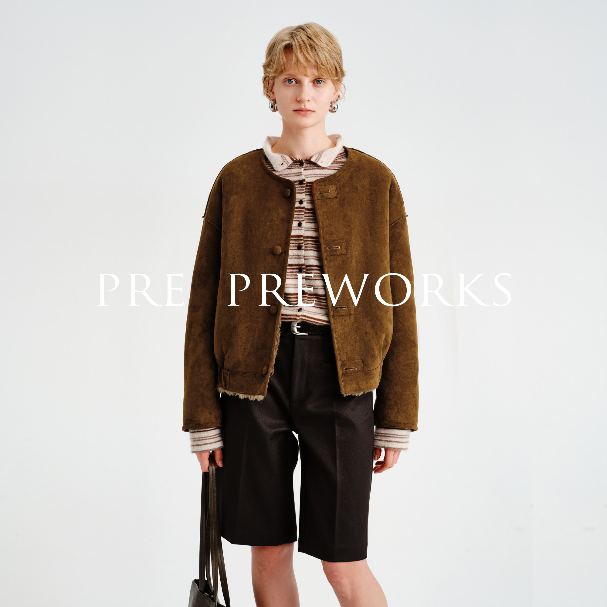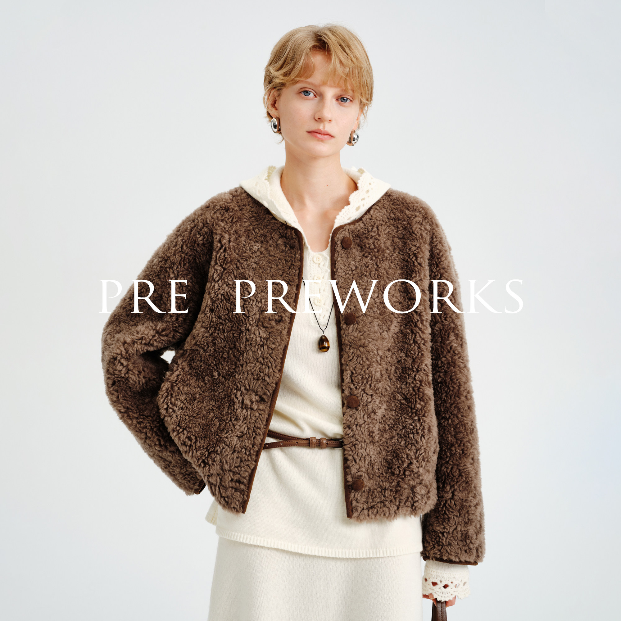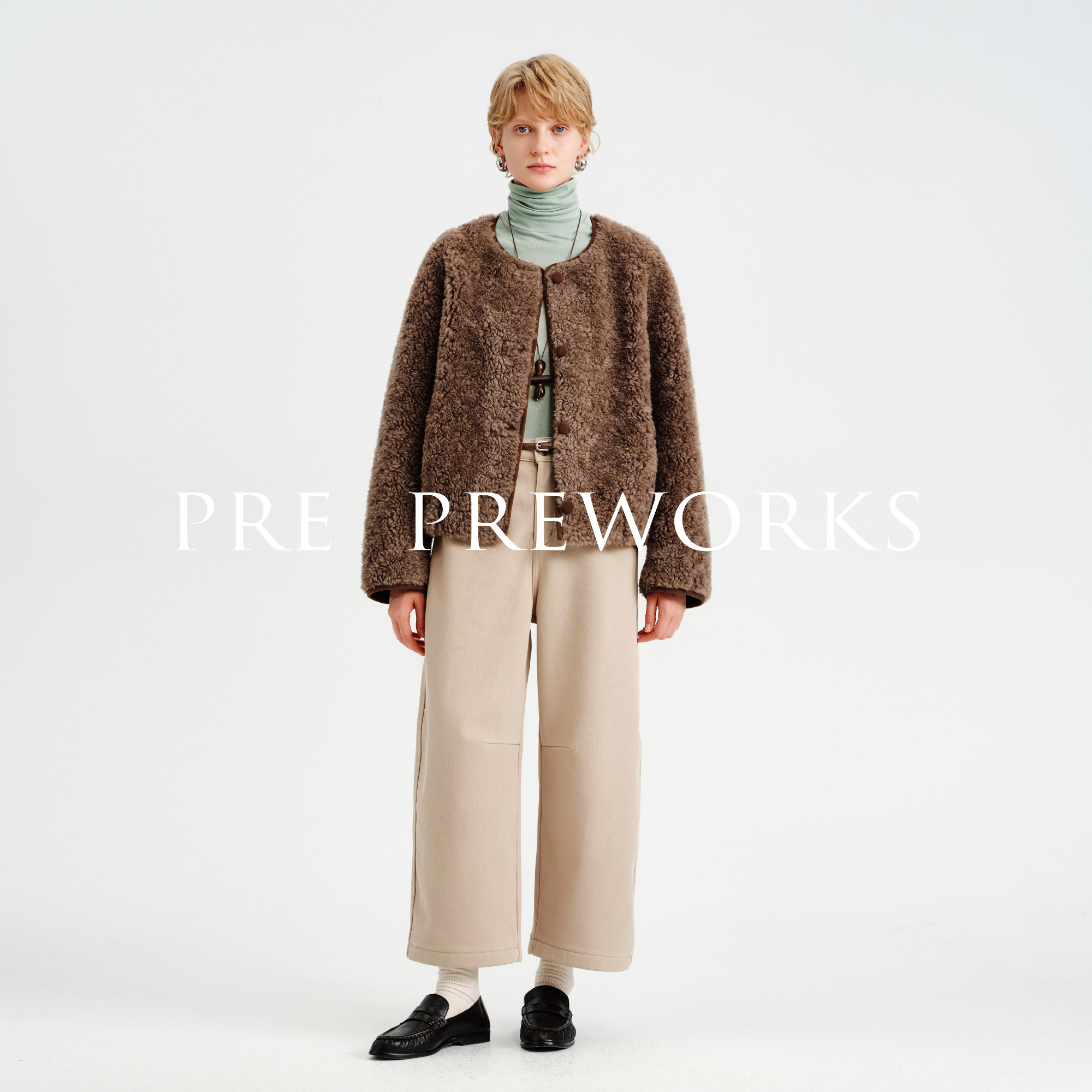 📚 PRE PREWORKS复古圆领双面穿绵羊毛皮毛一体皮草麂皮绒短款外套