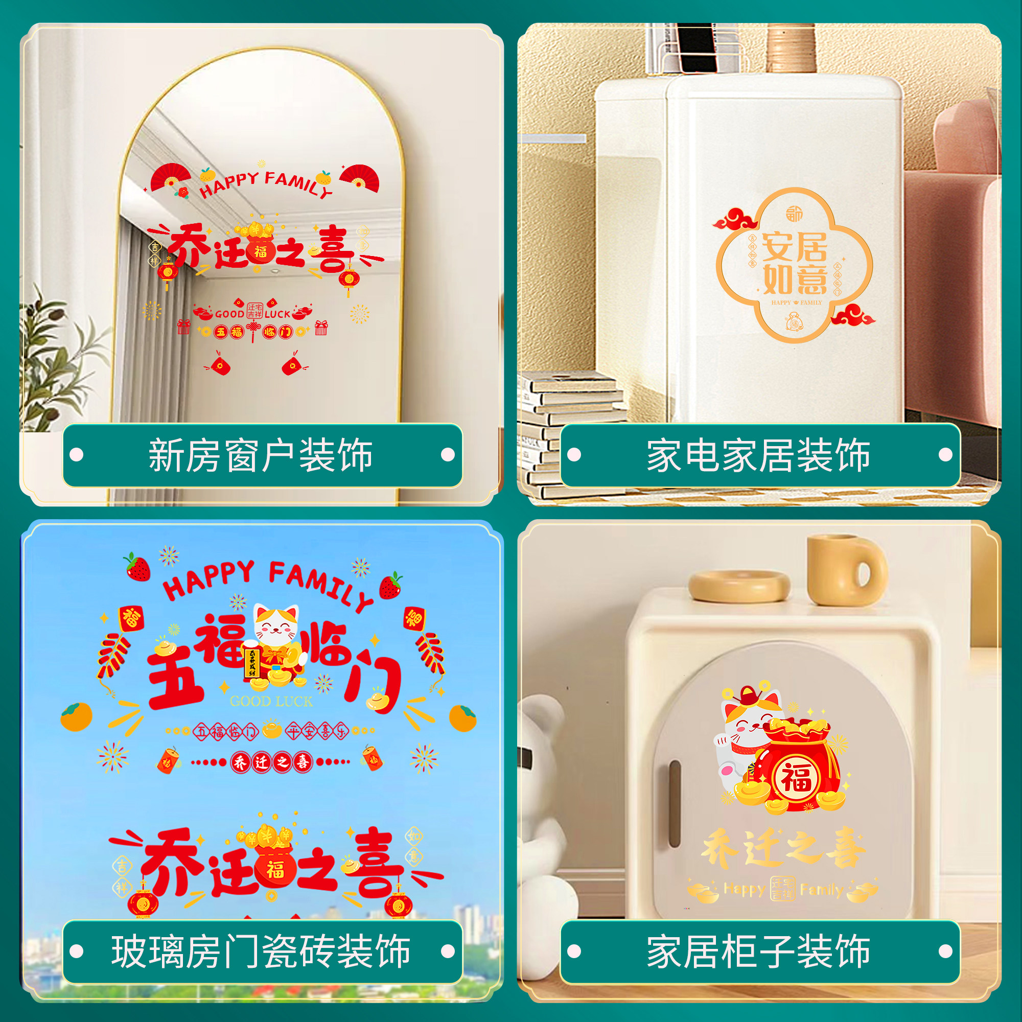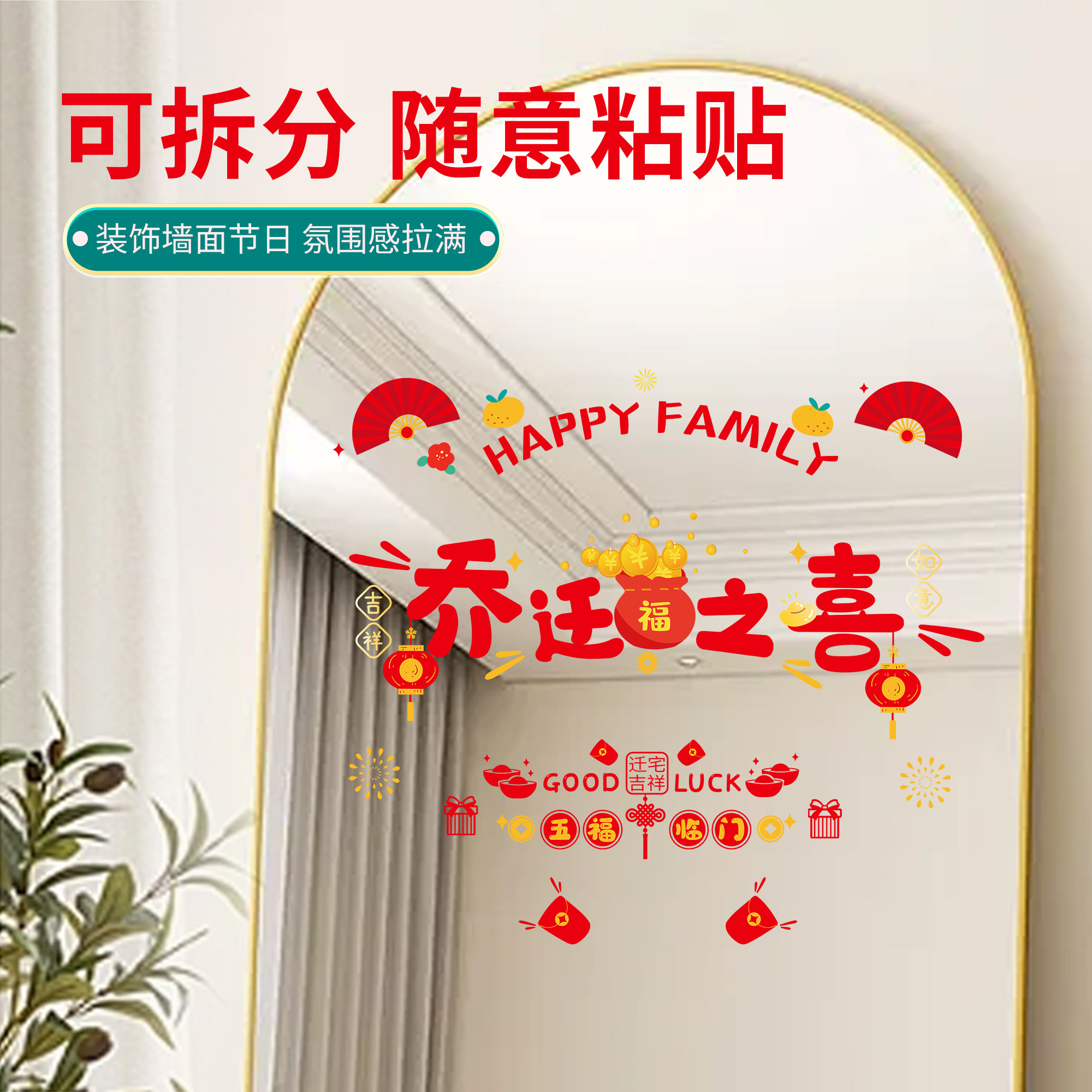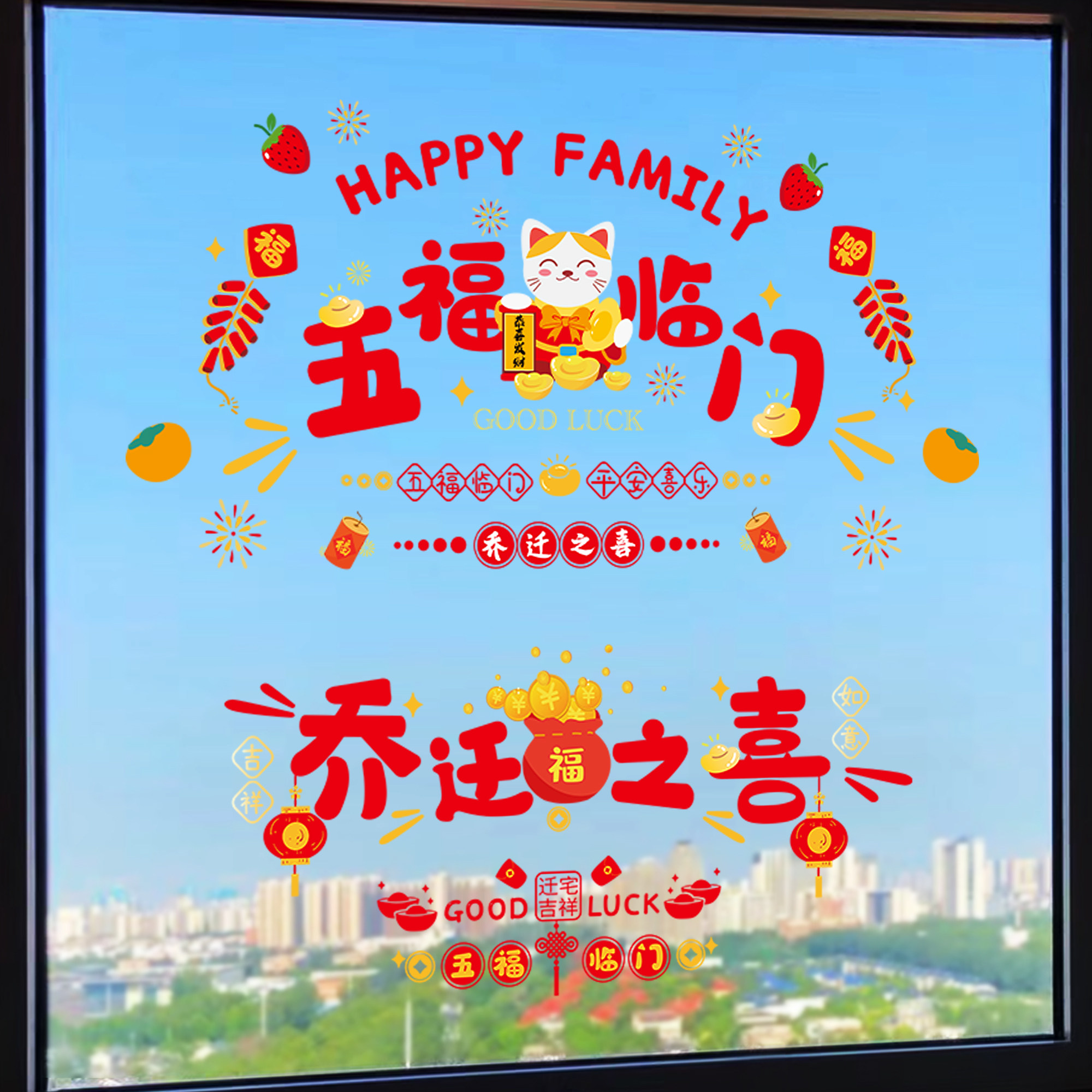 📚 乔迁之喜装饰静电贴窗花玻璃贴新居进宅大吉福字门贴剪纸布置用品
