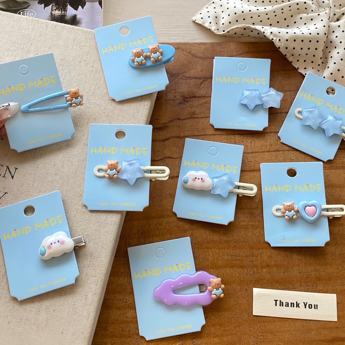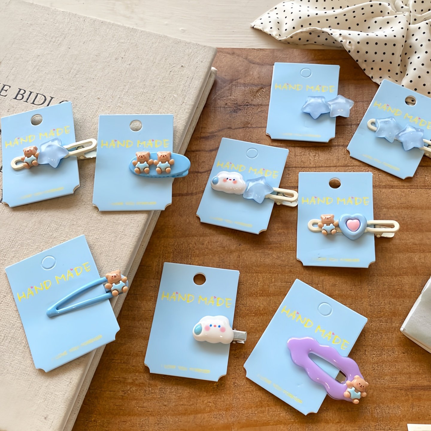 📚 可爱卡通小熊星星发夹女甜美少女侧边刘海夹发饰可爱云朵单边发夹