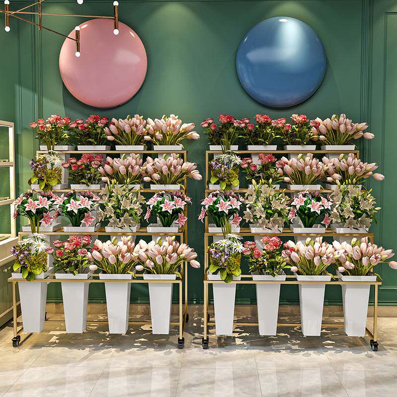 📚 摆摊可移动阶梯多层花店花架鲜花假花架子铁艺花架花桶展示架现货