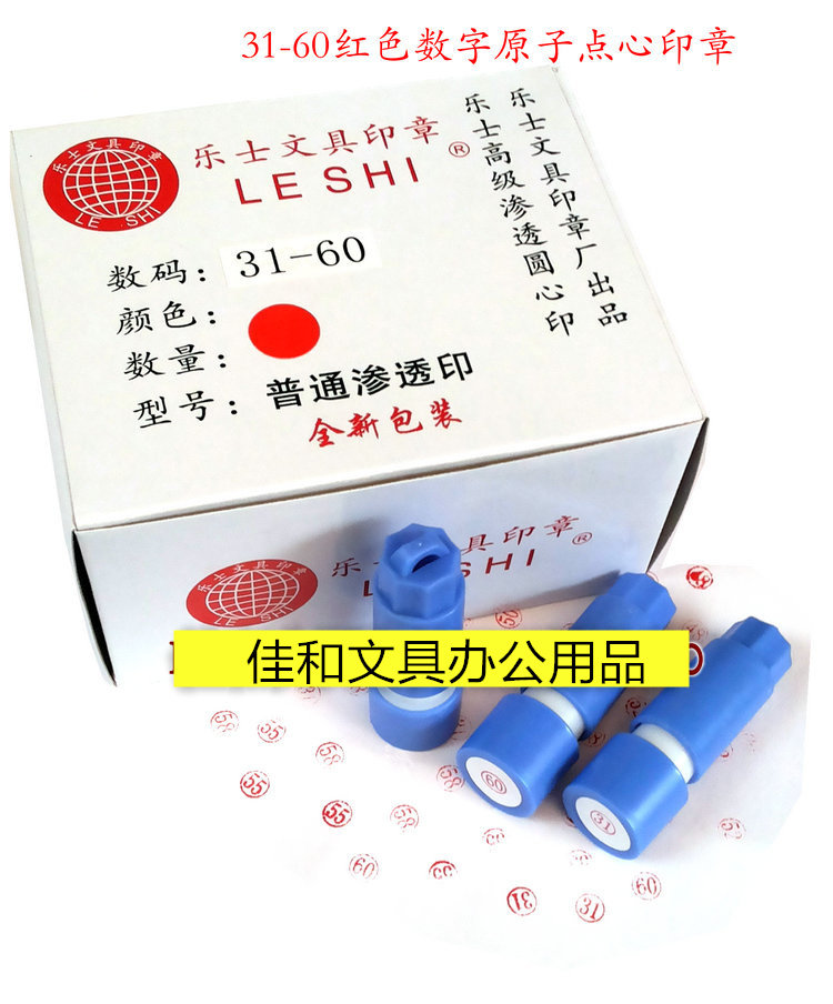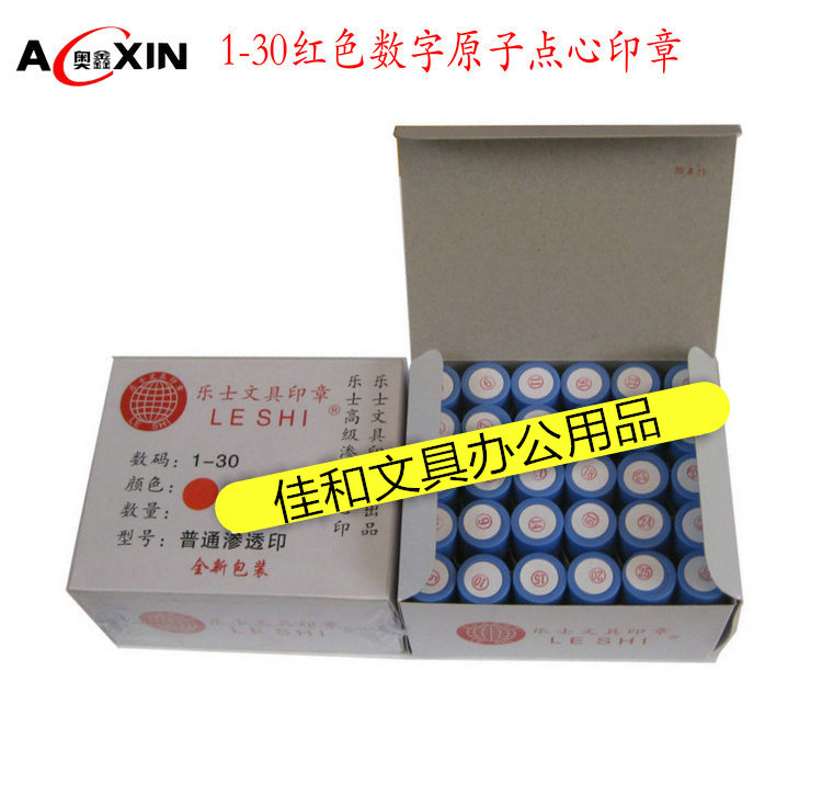 📚 乐士原子数字印章1-30红.酒店.宾馆点心印章 渗透印章 每盒30个