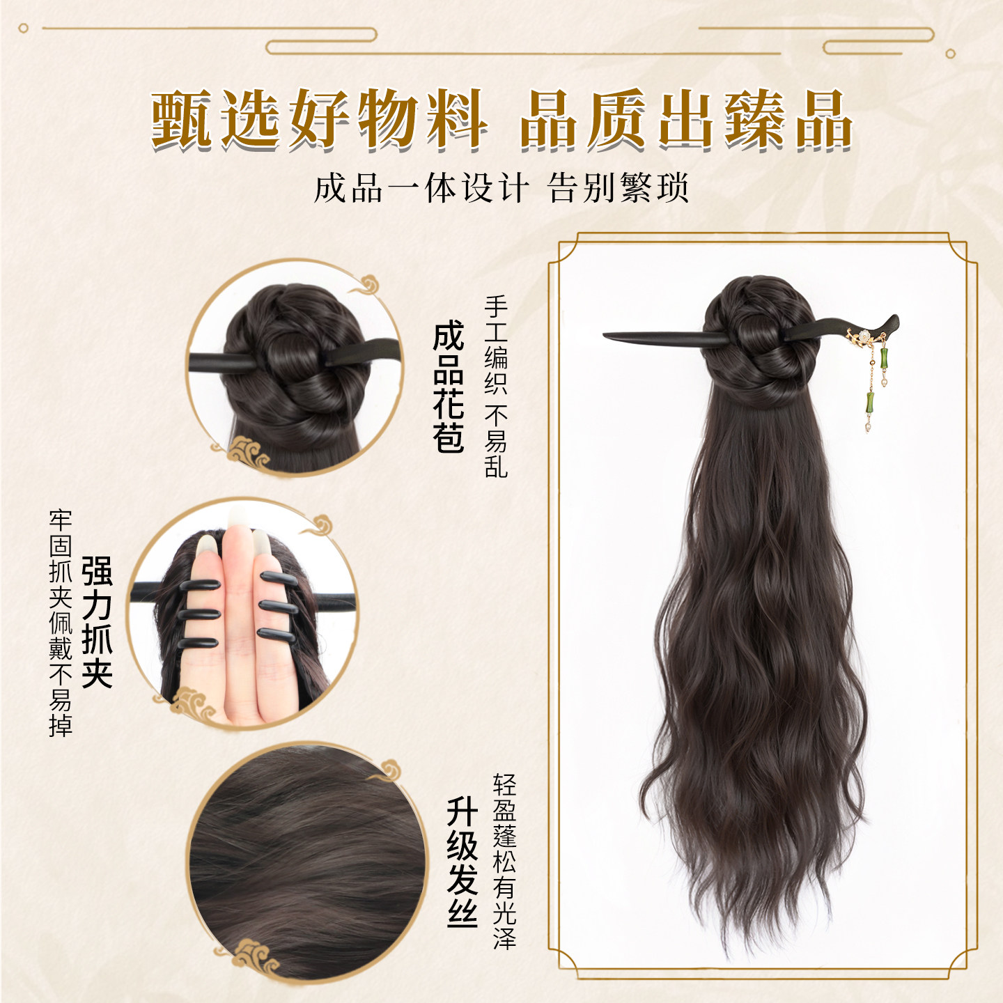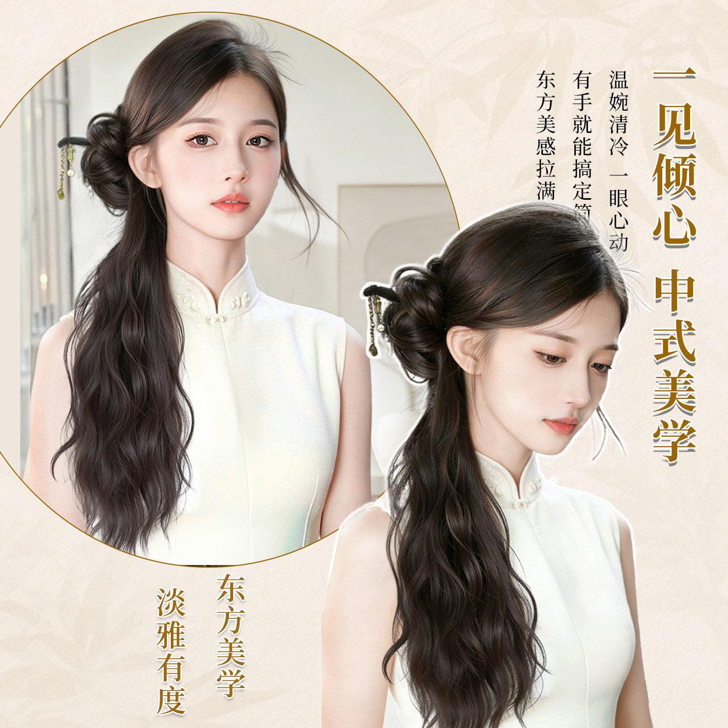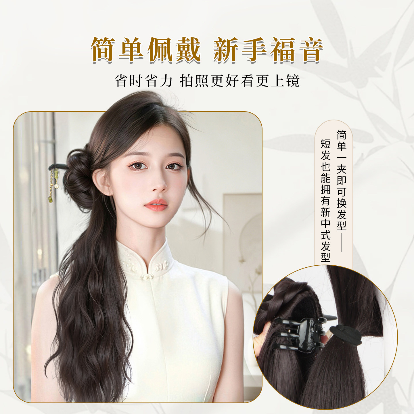📚 新中式假发马尾女抓夹古风汉服旗袍低扎发饰国风侧边马尾假发辫子