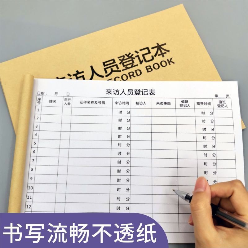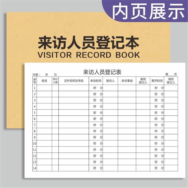📚 来访人员登记表外来人员登记簿前台访客薄小区酒店公司出入记录本