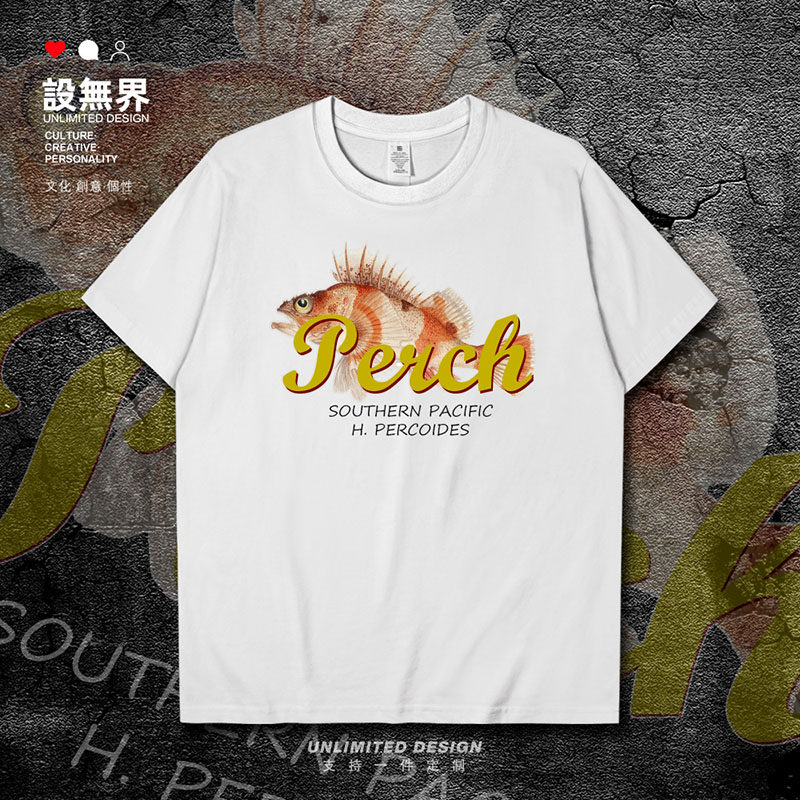 📚 鲈鱼类Perch鲈亚目真鲈平鲉亚科插画印花短袖T恤男女体恤设 无界