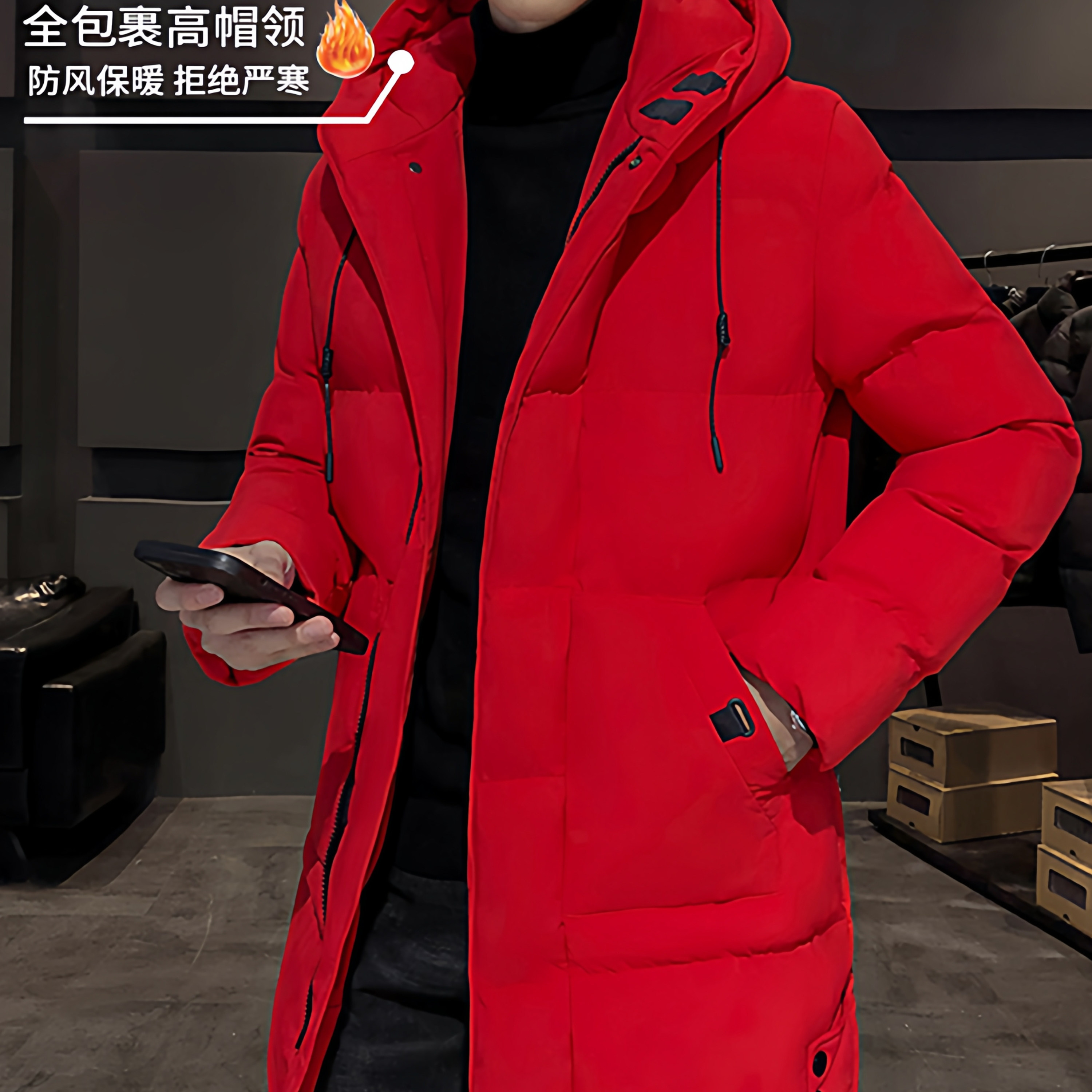 📚 大码大红色中长款棉服男款冬季加厚加肥加大胖子本命年北方厚棉袄