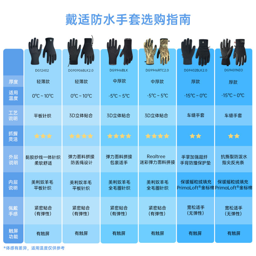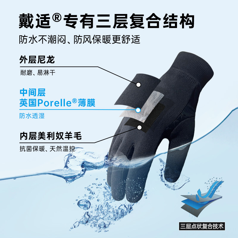 📚 戴适DexShell防水手套户外StretchFit薄织羊毛内里三层贴合 触屏