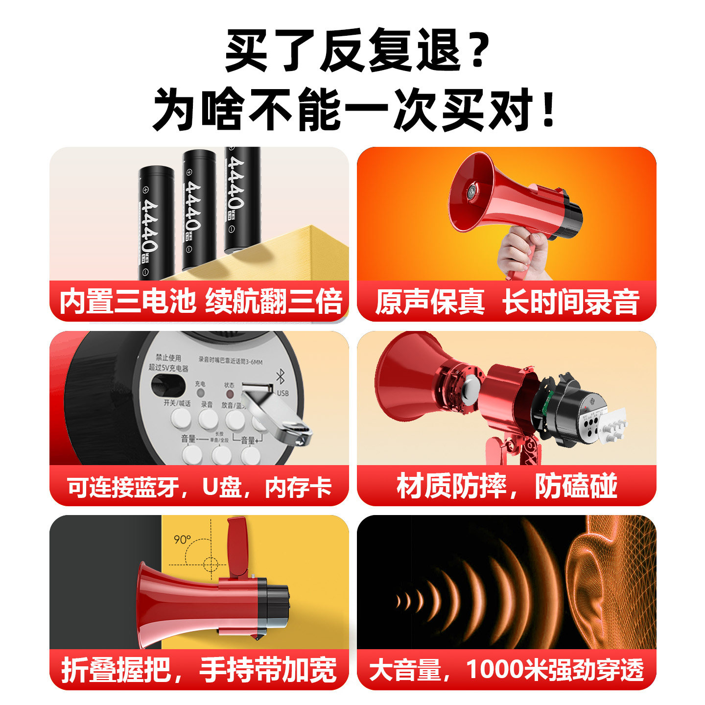📚 大喇叭扬声器录音手持高音小喇叭扩音器地摊叫卖宣传喊话器摆摊用