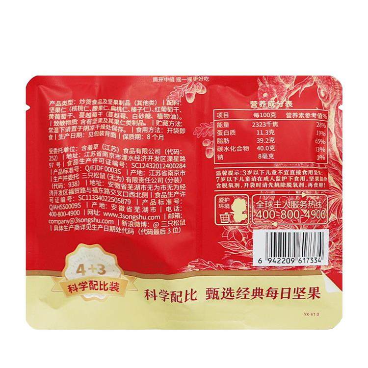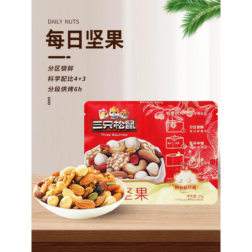 📚 三祇松鼠每日坚果25gX10袋装便携4坚果3果干休闲混合装零食小吃