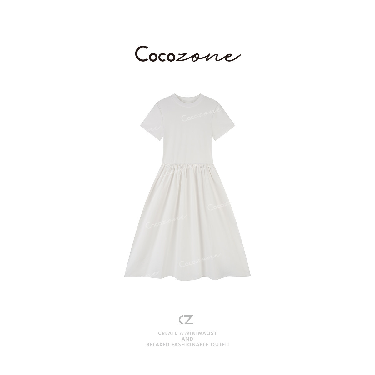 📚 COCO ZONE 刘一一"索罗纳棉混纺"圆领修身显瘦T恤连衣裙 CD2A1473