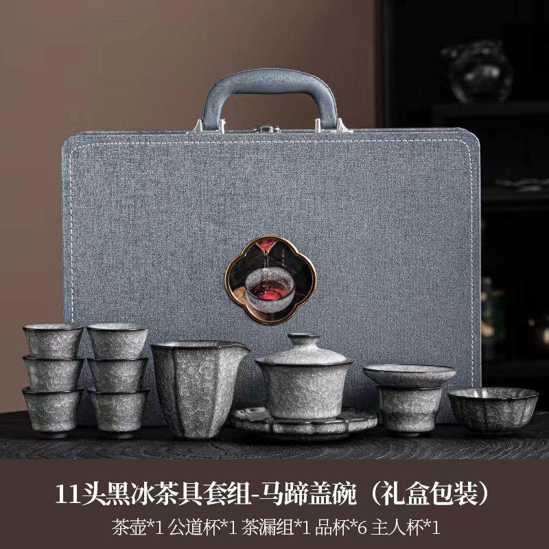 #铁胎黑冰功夫茶具套装 #简约办公室必备 #遇水化冰茶壶 #茶杯礼盒装