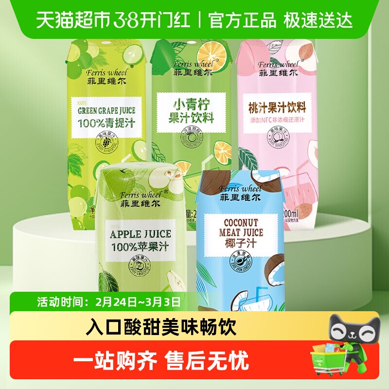 📚 菲里维尔苹果汁青柠汁桃汁椰汁饮品饮料整箱畅享分享聚会聚餐