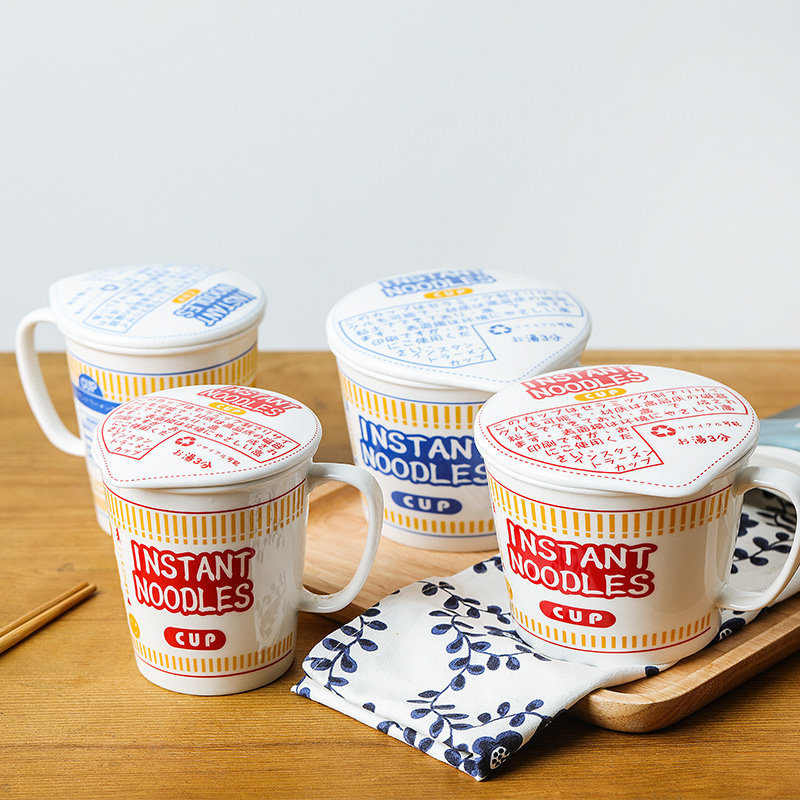 📚 ins style creative instant noodle ceramic Cup bowl with cove