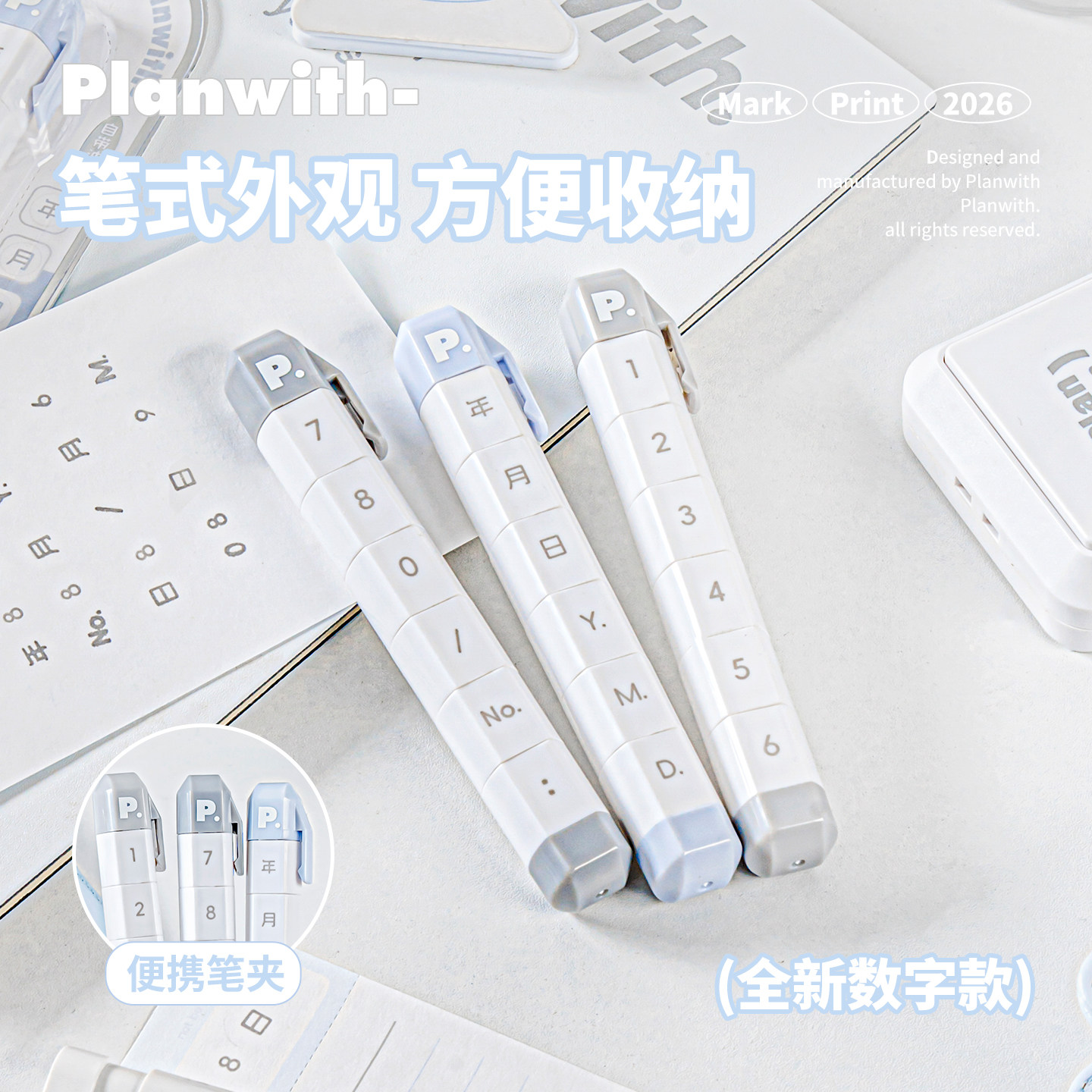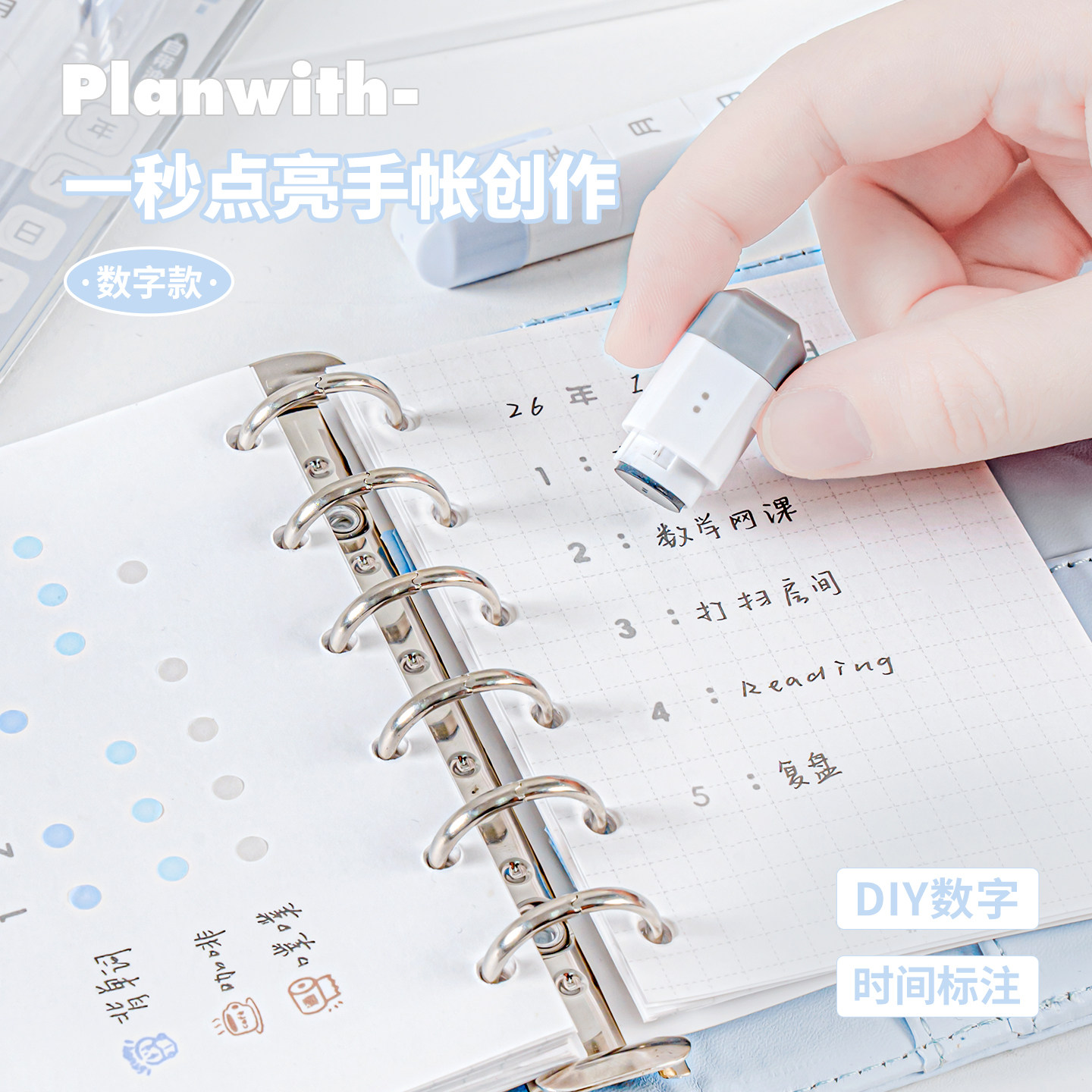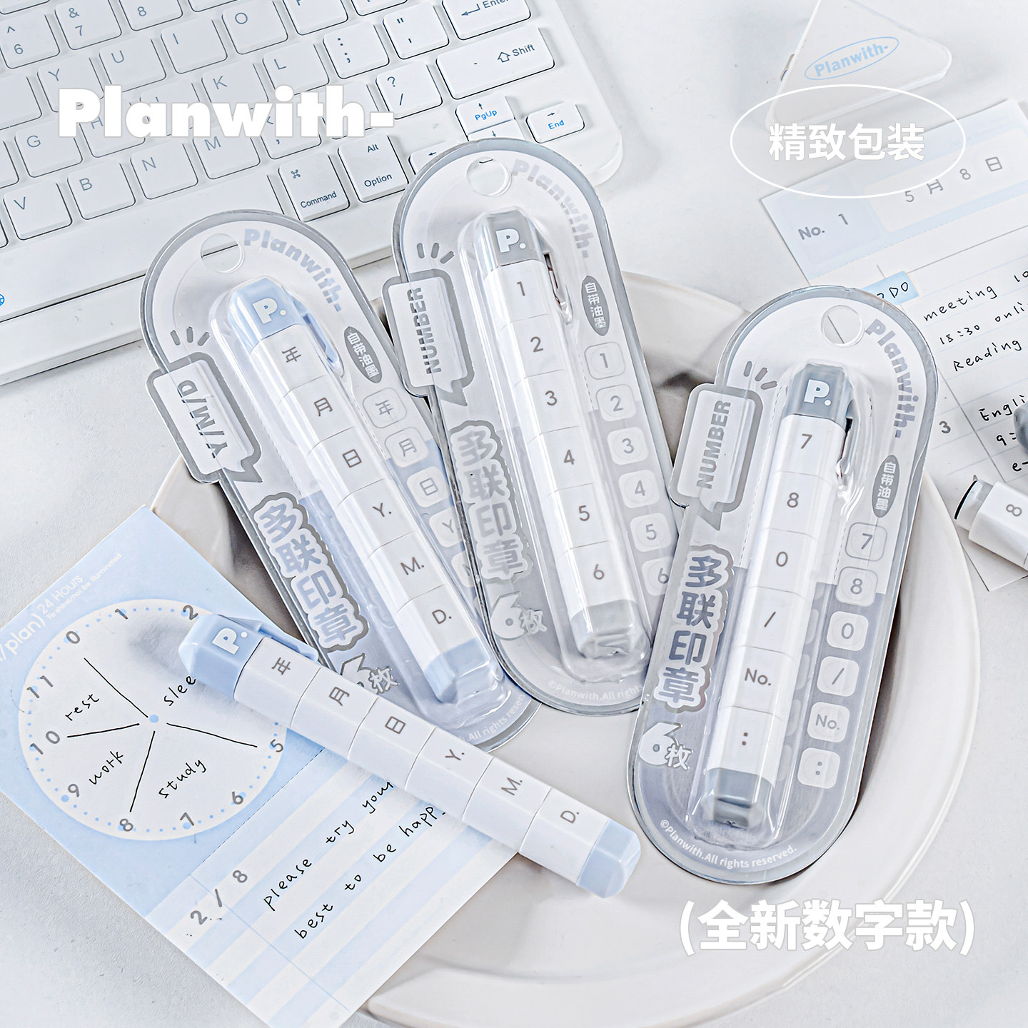 📚 Planwith笔式六联印章数字款自带油墨旋转可拆卸学生用印计划多联印章年月日生活记录手帐素材打卡图章