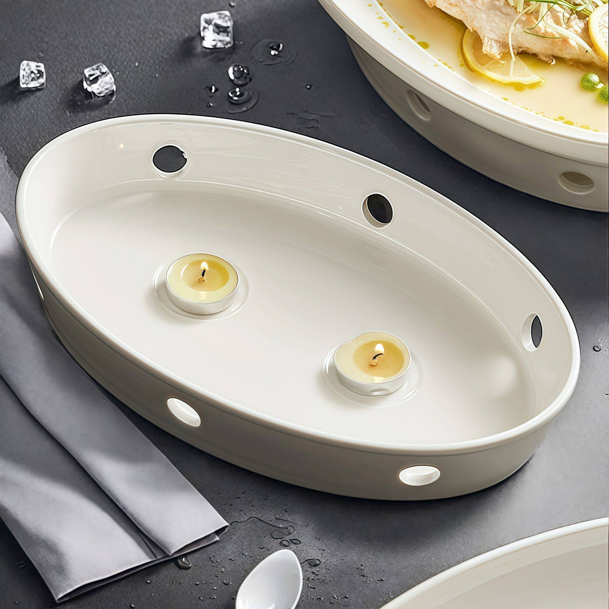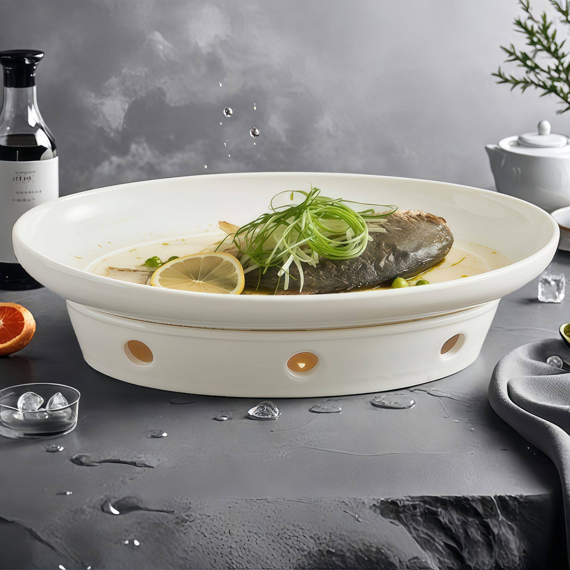 📚 酒店保温鱼盘家用蒸鱼盘子商用陶瓷干锅蜡烛加热明炉餐具饭店专用