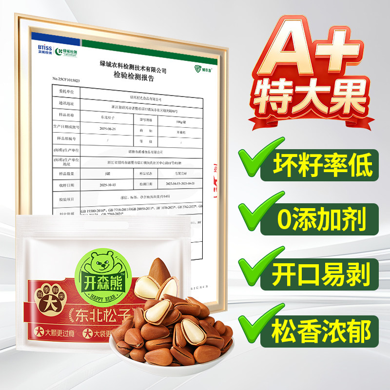 📚 开森熊东北松子250g新货甄选大颗粒开口松子原味坚果零食