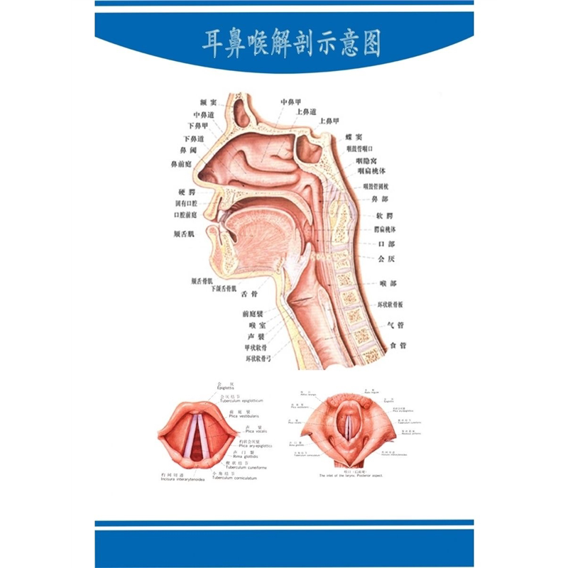 📚 喉部解剖示意图医院耳鼻喉解剖图人体穴位图中医养生保健海报墙贴