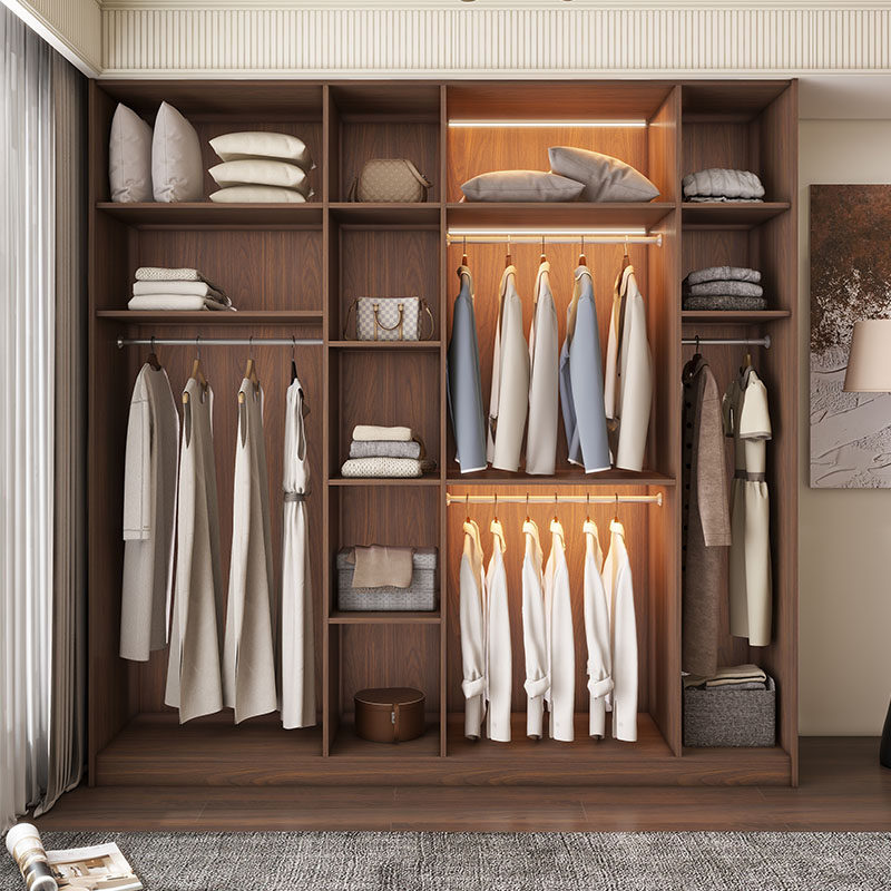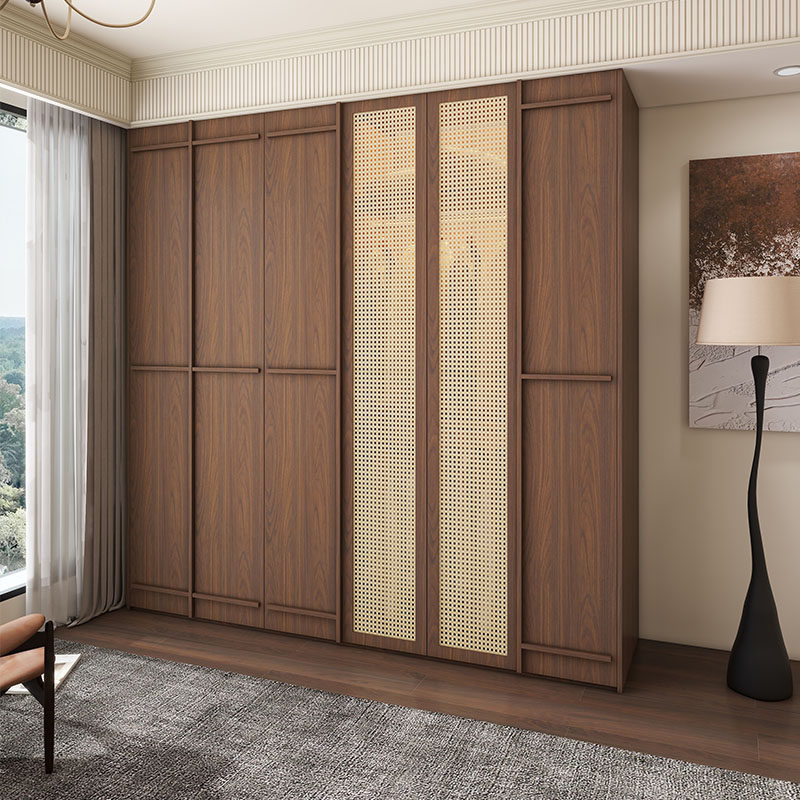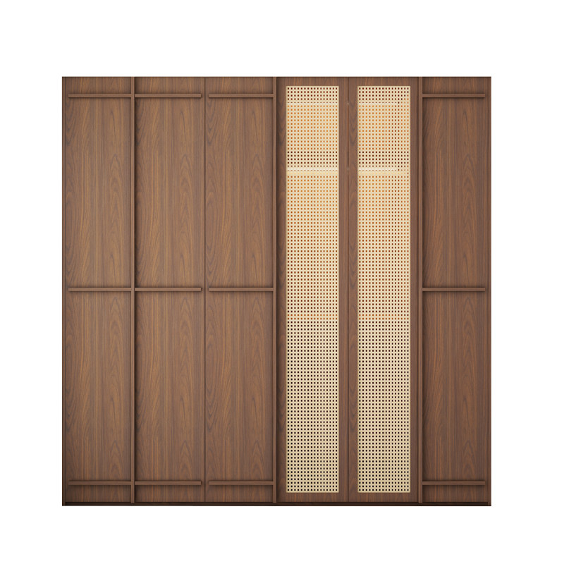 📚 实木复古衣柜卧室家用中古风衣橱骨骼线藤编收纳储物柜胡桃木定制