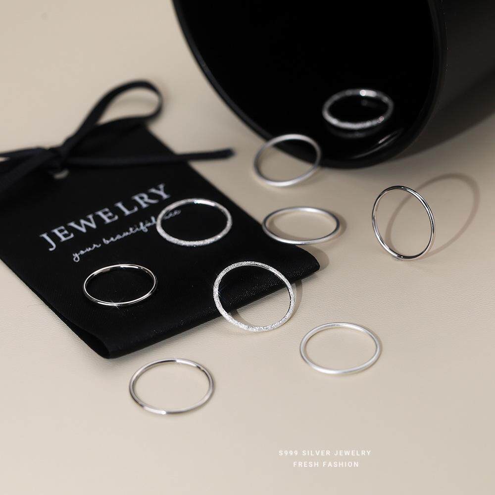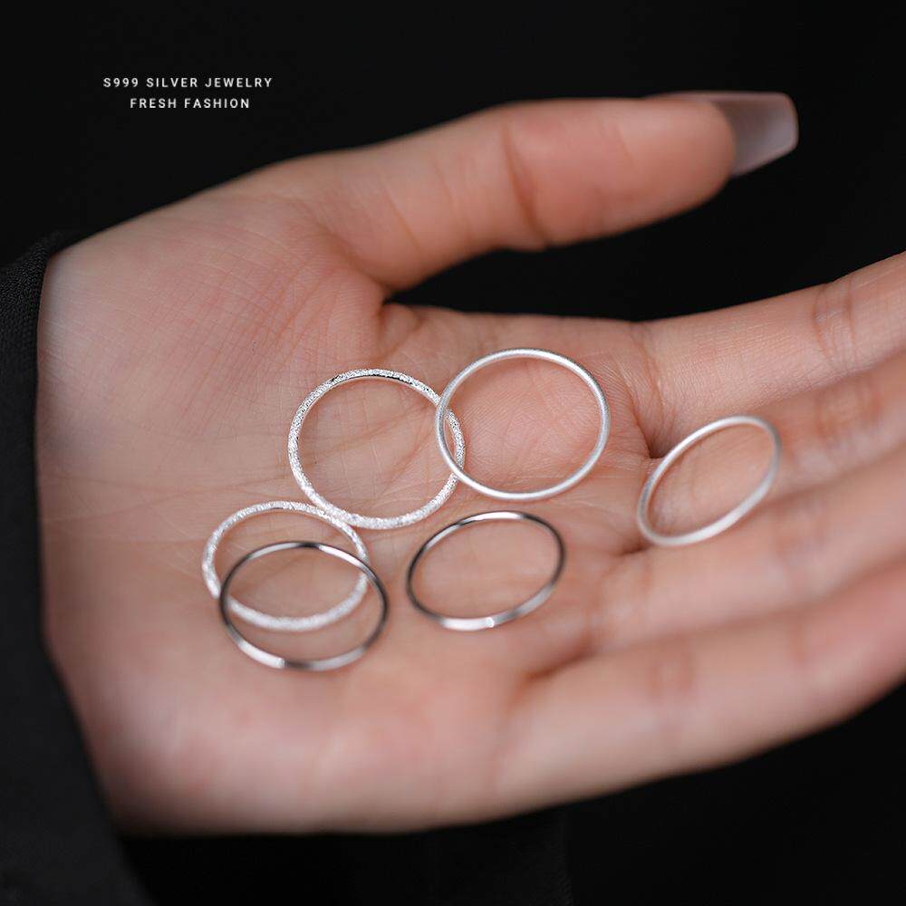 📚 S999足银戒指女小众设计新款食指戒古法细素圈对戒轻奢高级尾戒