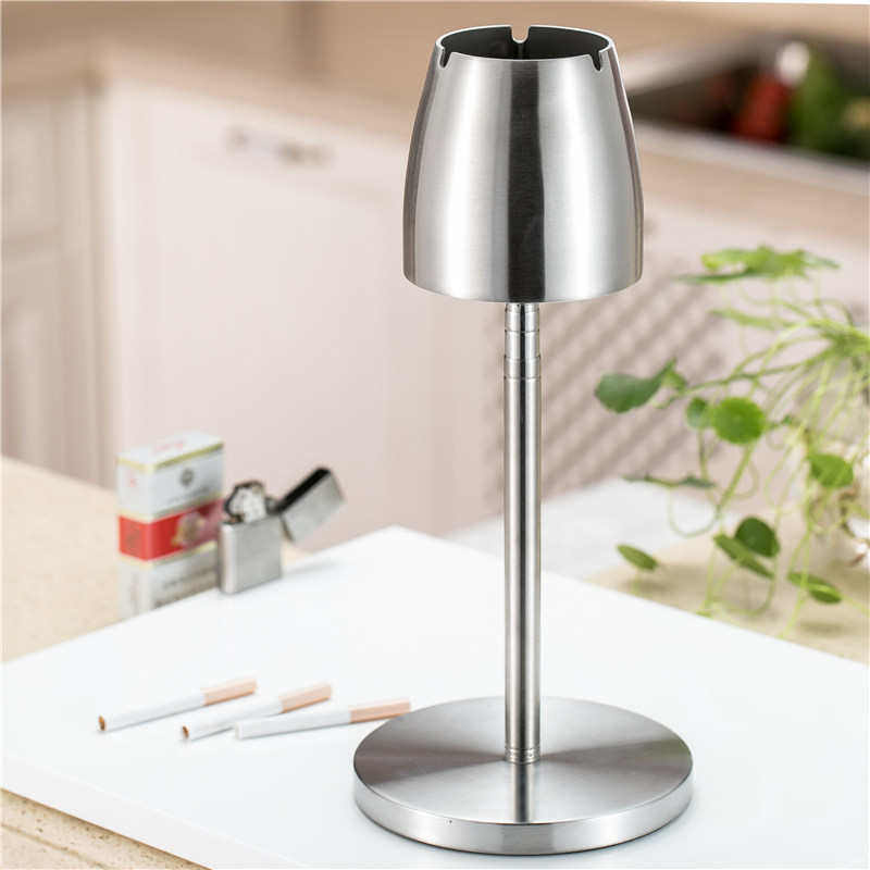 📚 带盖伸缩加厚款不锈钢烟灰缸带烟柱大号烟缸网吧网咖创意烟盅