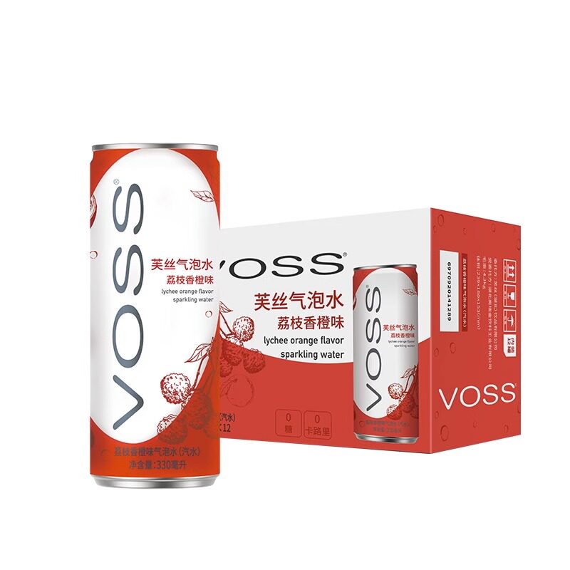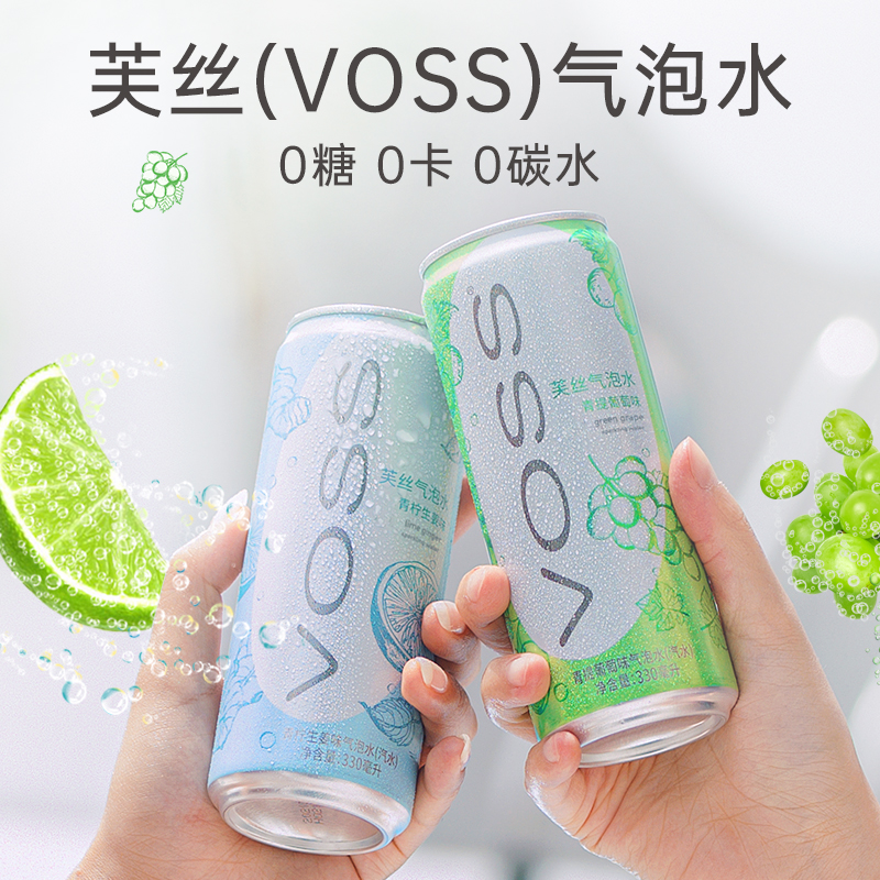 📚 voss芙丝气泡水0糖0卡白桃葡萄荔枝果味气泡水饮料330ml*12罐包邮