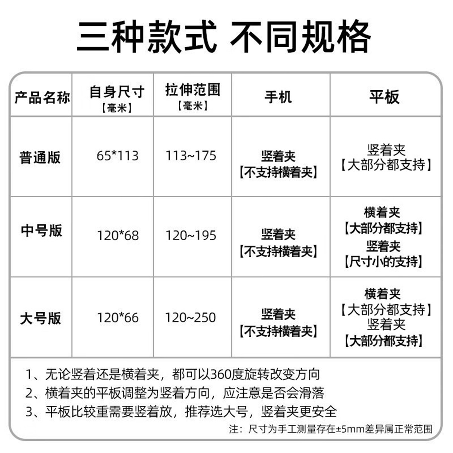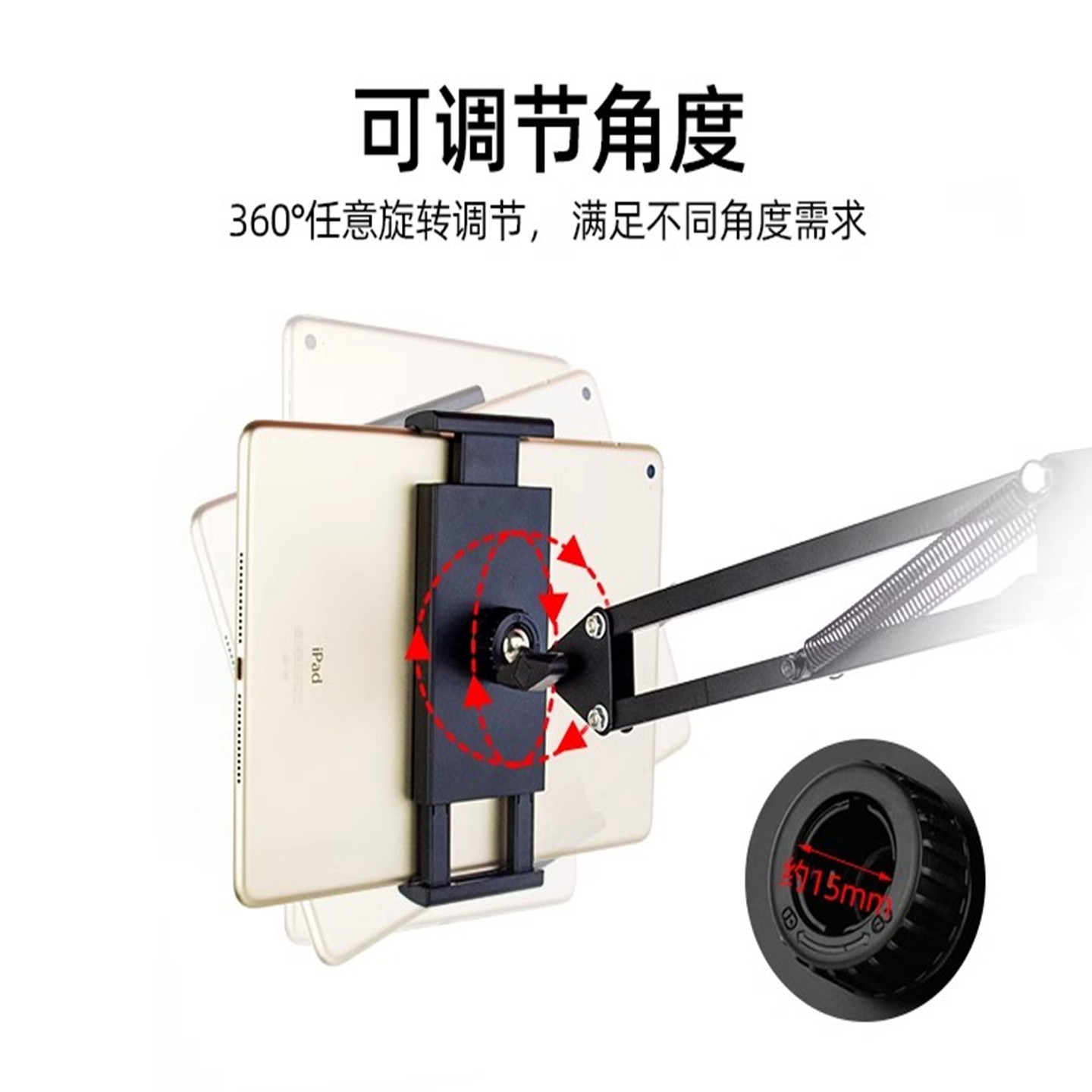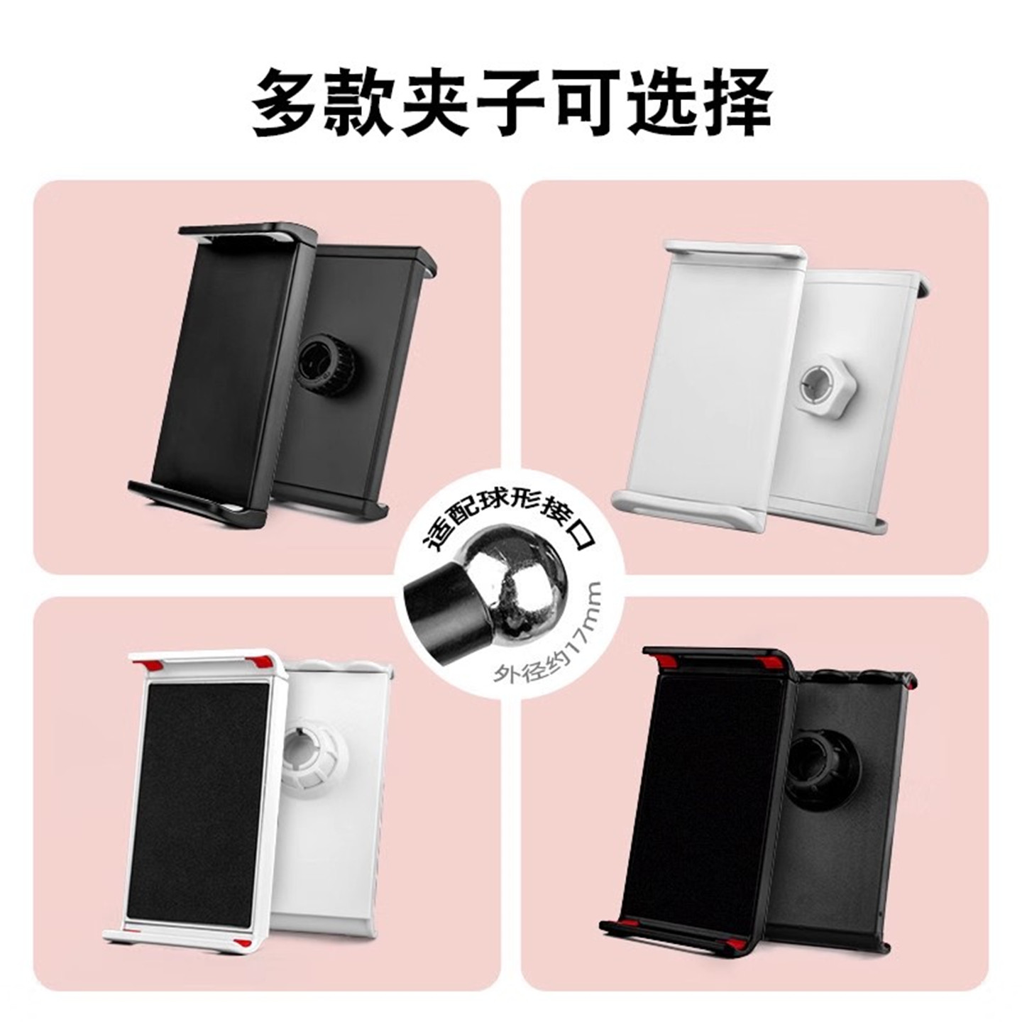 📚 手机平板通用夹旋转两用夹手机支架配件竖屏拍横拍球头夹适用于pad直播大号拉伸夹子头17mm球头加大平板夹子