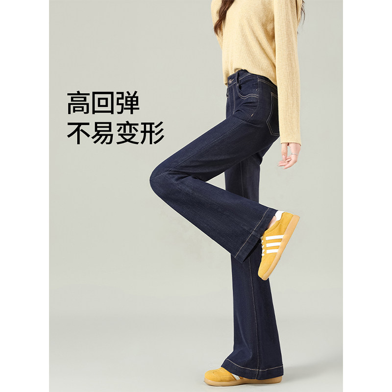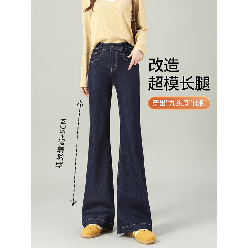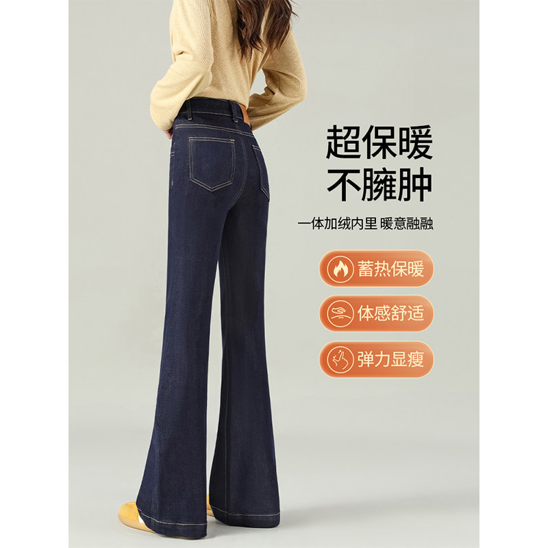📚 丹宁蓝加绒微喇牛仔裤女2026新款今年流行冬不贴腿高腰显瘦喇叭裤