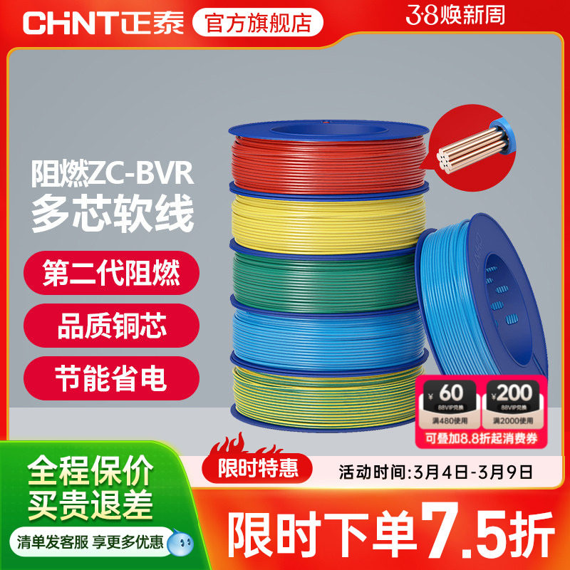 📚 正泰国标电线阻燃ZC-BVR 2.5/4/6平方多芯股软线家用铜芯铜线电缆