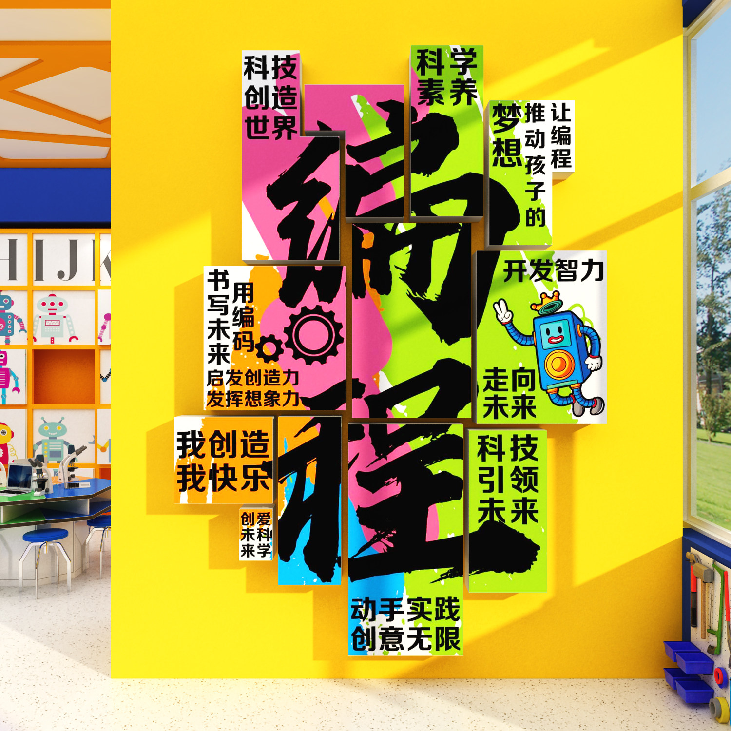 📚 乐高教室布置装饰科技主题文化训机构机器人环创幼少儿园编程墙纸