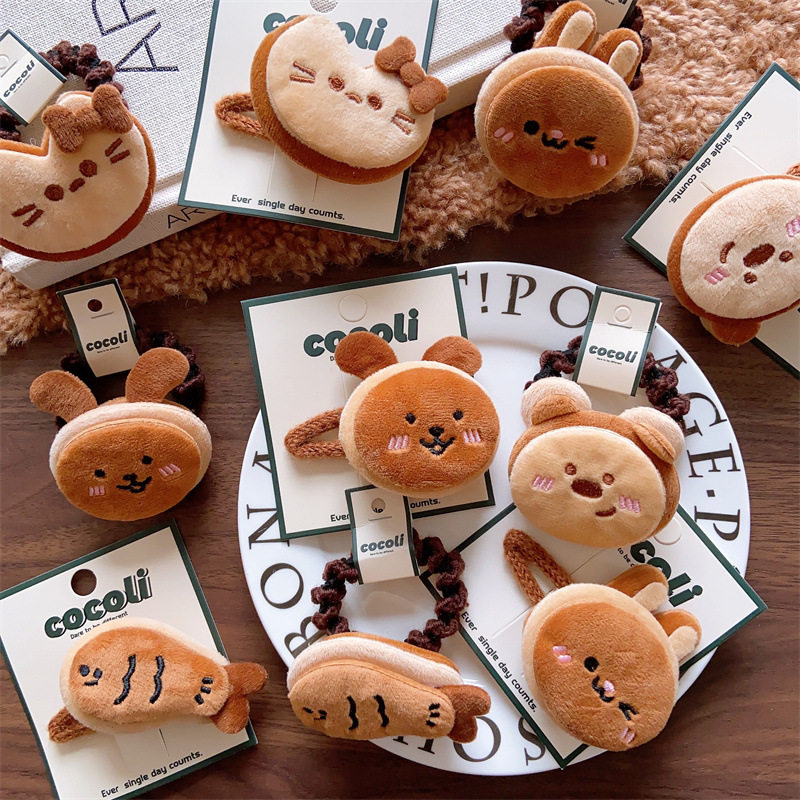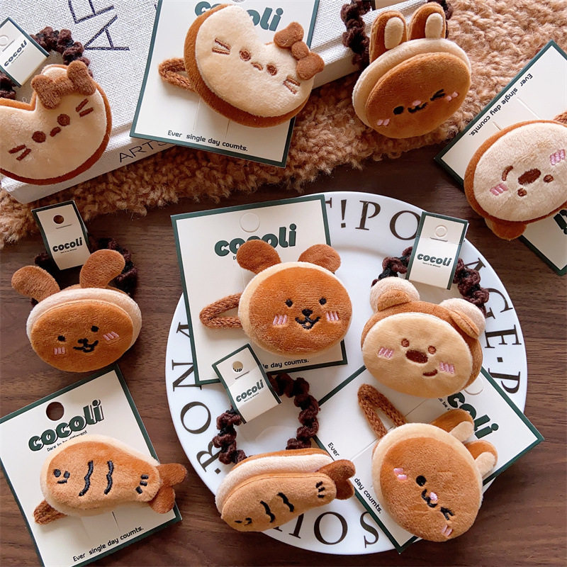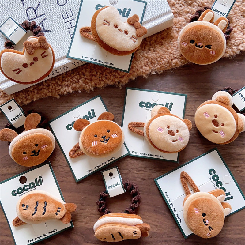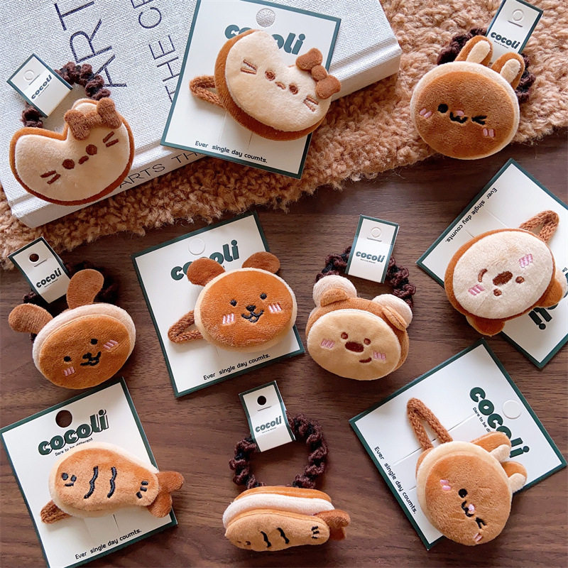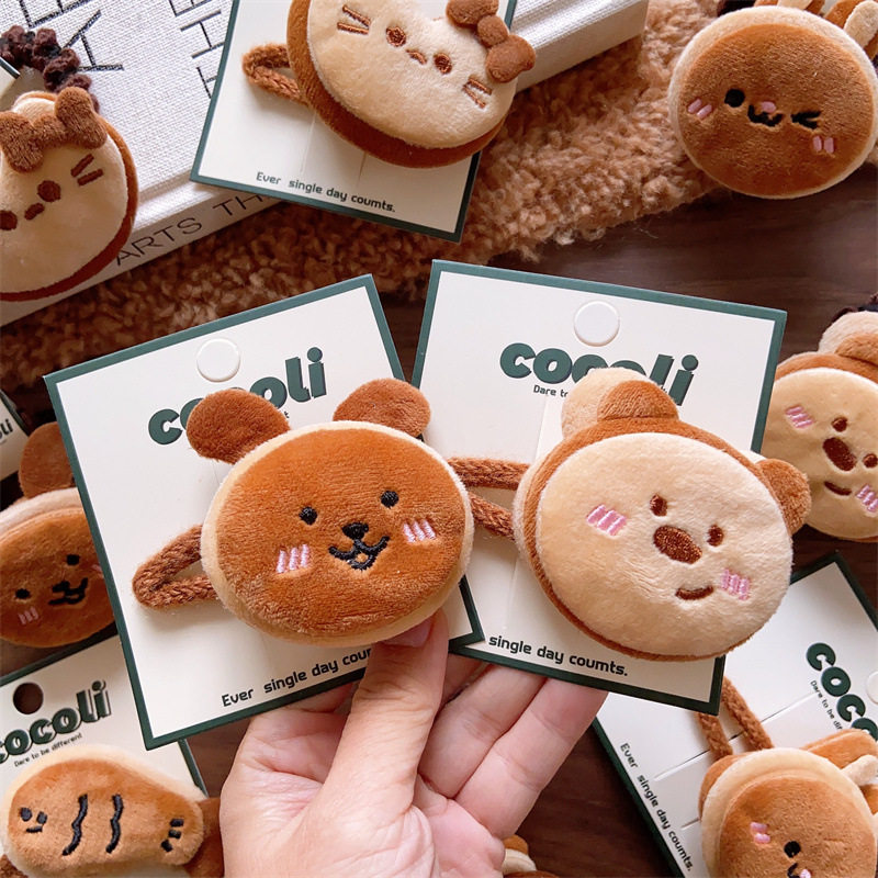 📚 动物脑袋发夹发圈充棉立体梅拉德卡通毛绒绒女童咖色毛线BB夹头绳