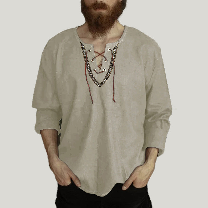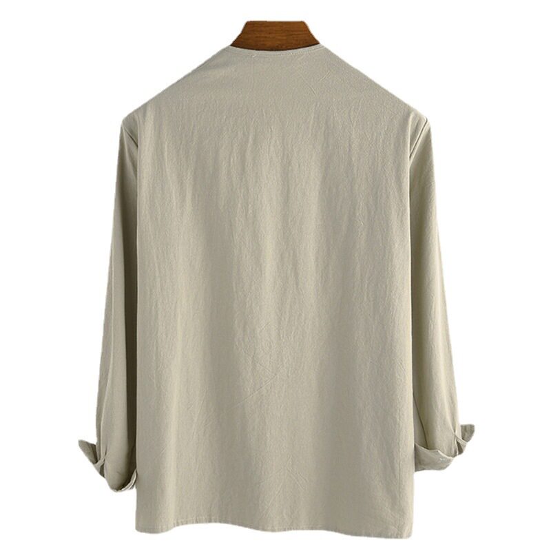 📚 Men's shirts 欧美男装宽松纯色抽绳长袖衬衫立领男士衬衣