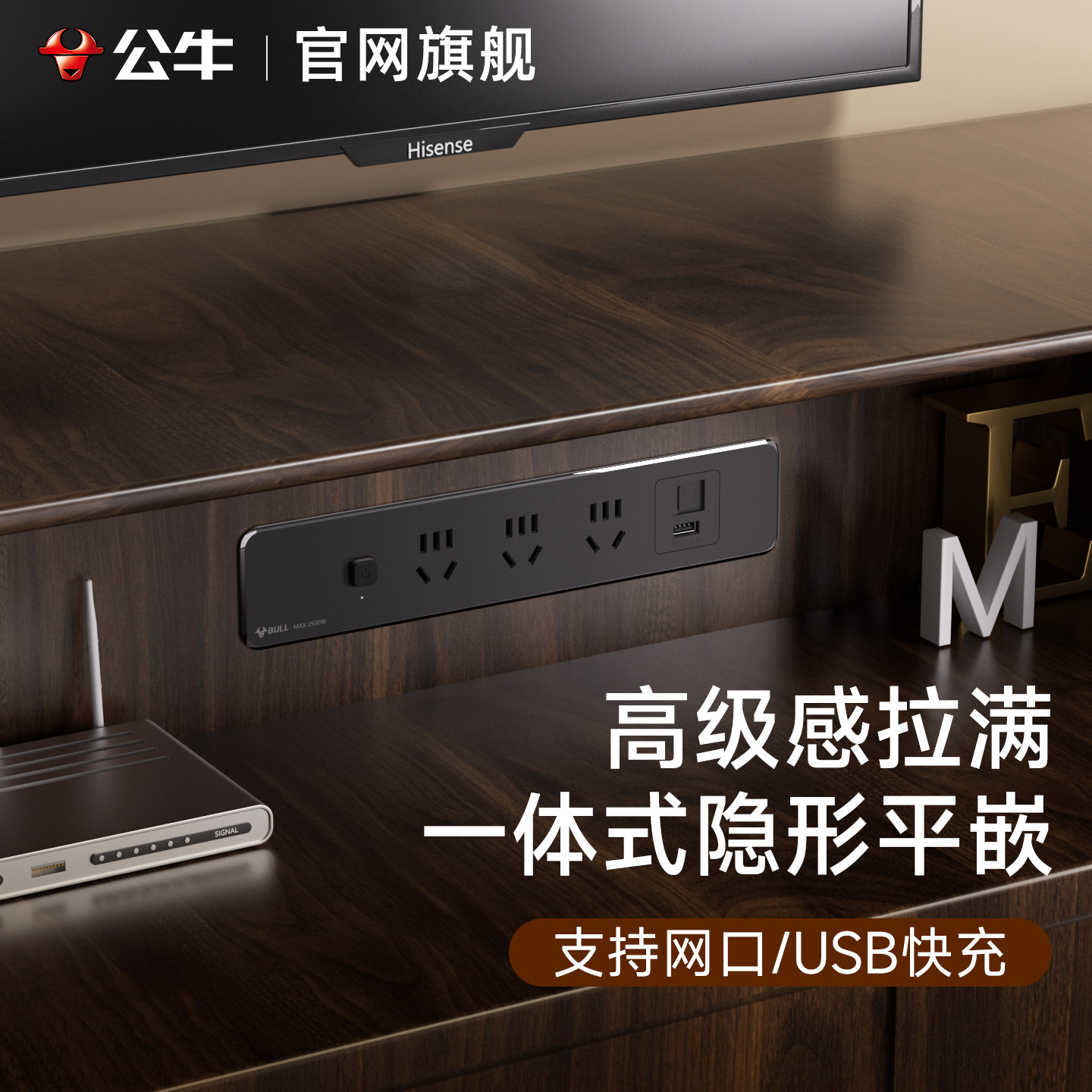 📚 公牛多功能插座桌面嵌入式隐形插排多插位扩展超薄带开关网口usb