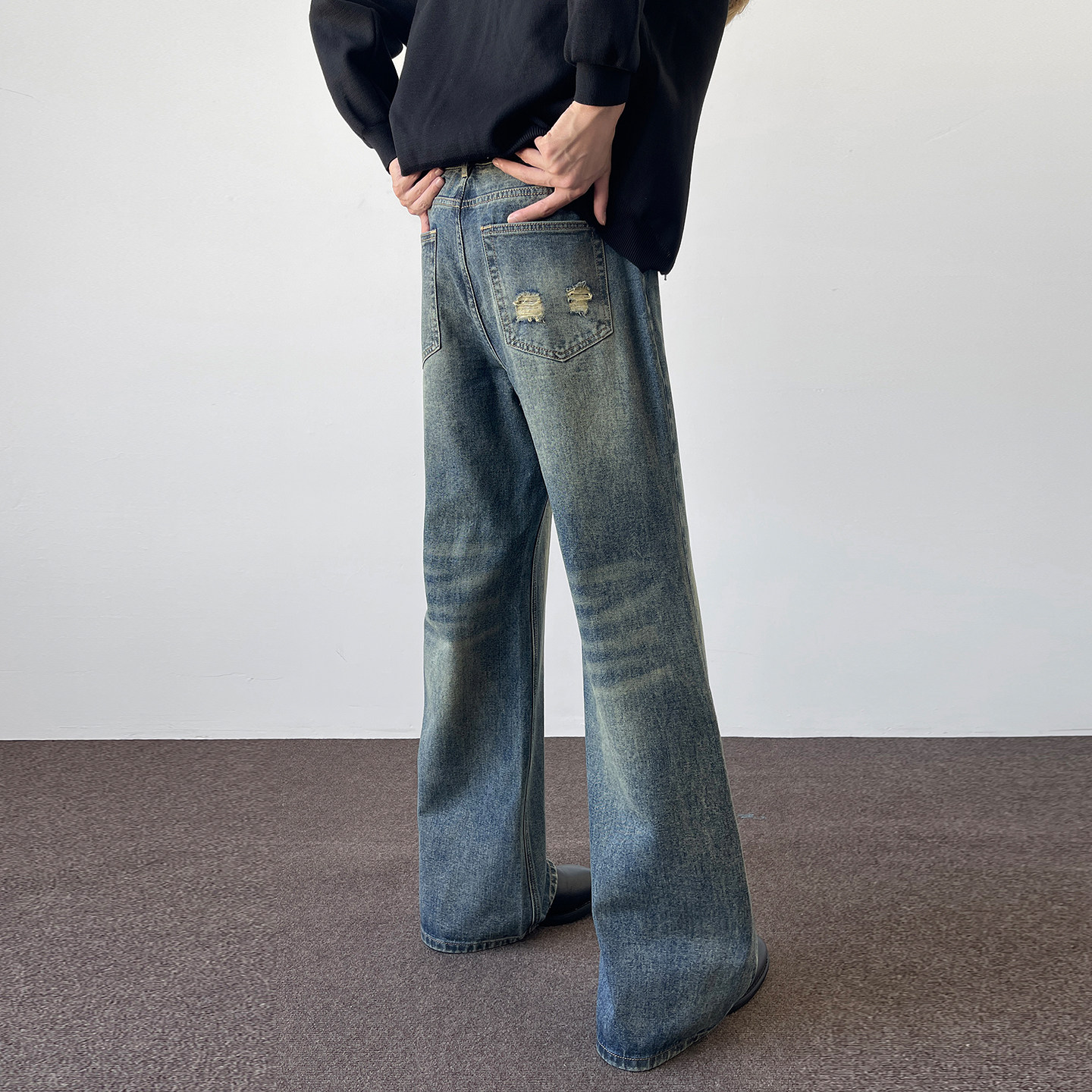 📚 190高个子加长版高级感复古蓝微喇牛仔裤男生修身美式高街有加绒