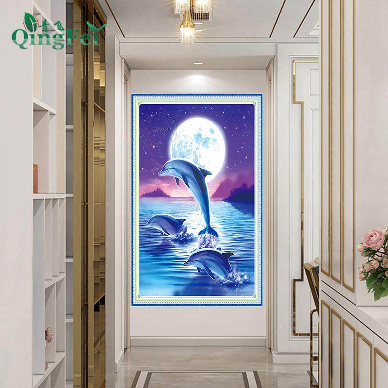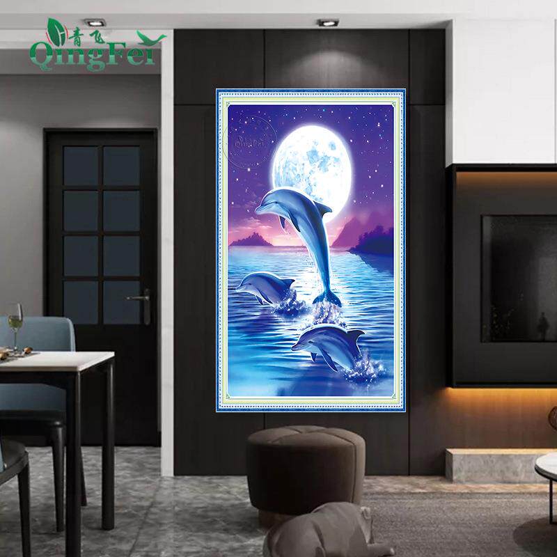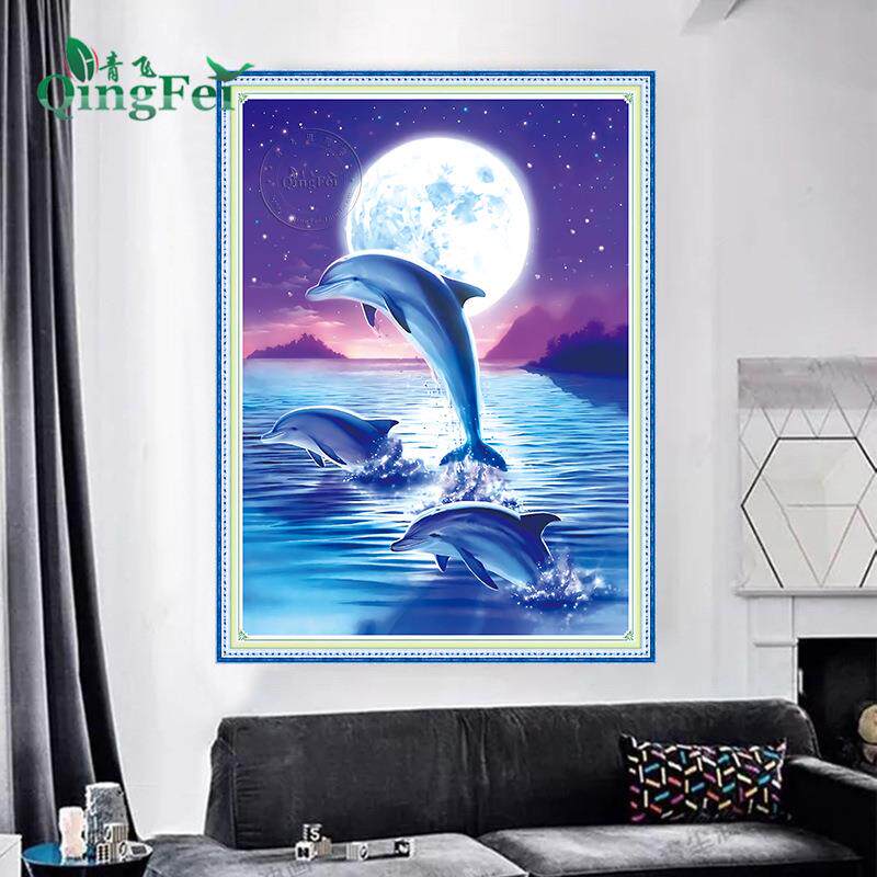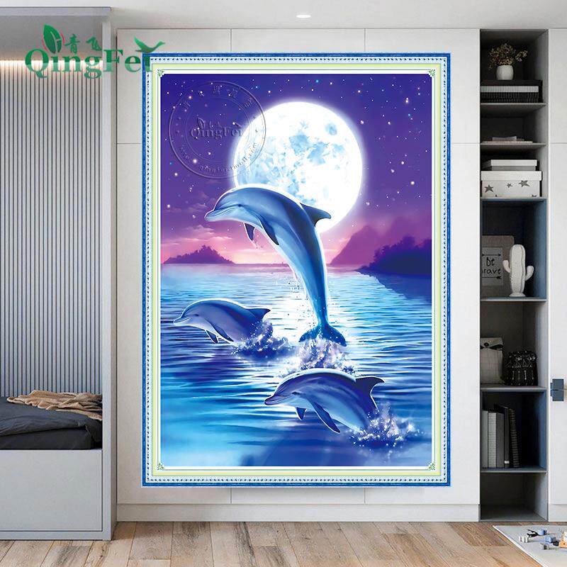 📚 青飞精准印布新款星空月光下的海豚十字绣客厅卧室满绣有钻石画