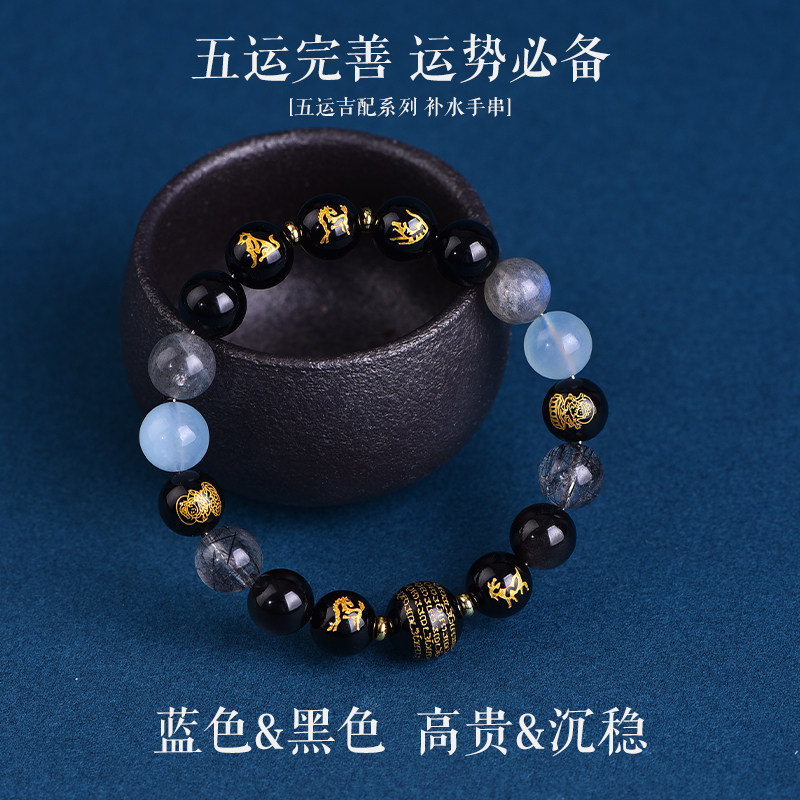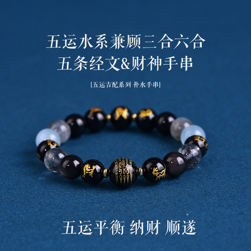 📚 五行手串属性补水喜三合六合手链十二生肖黑曜石海蓝宝【普陀山】